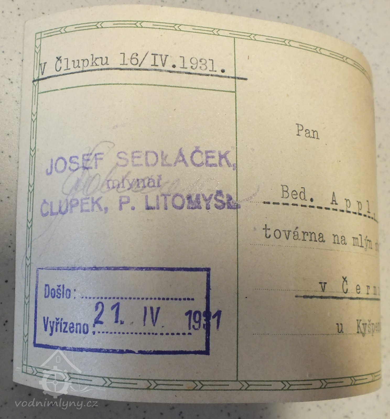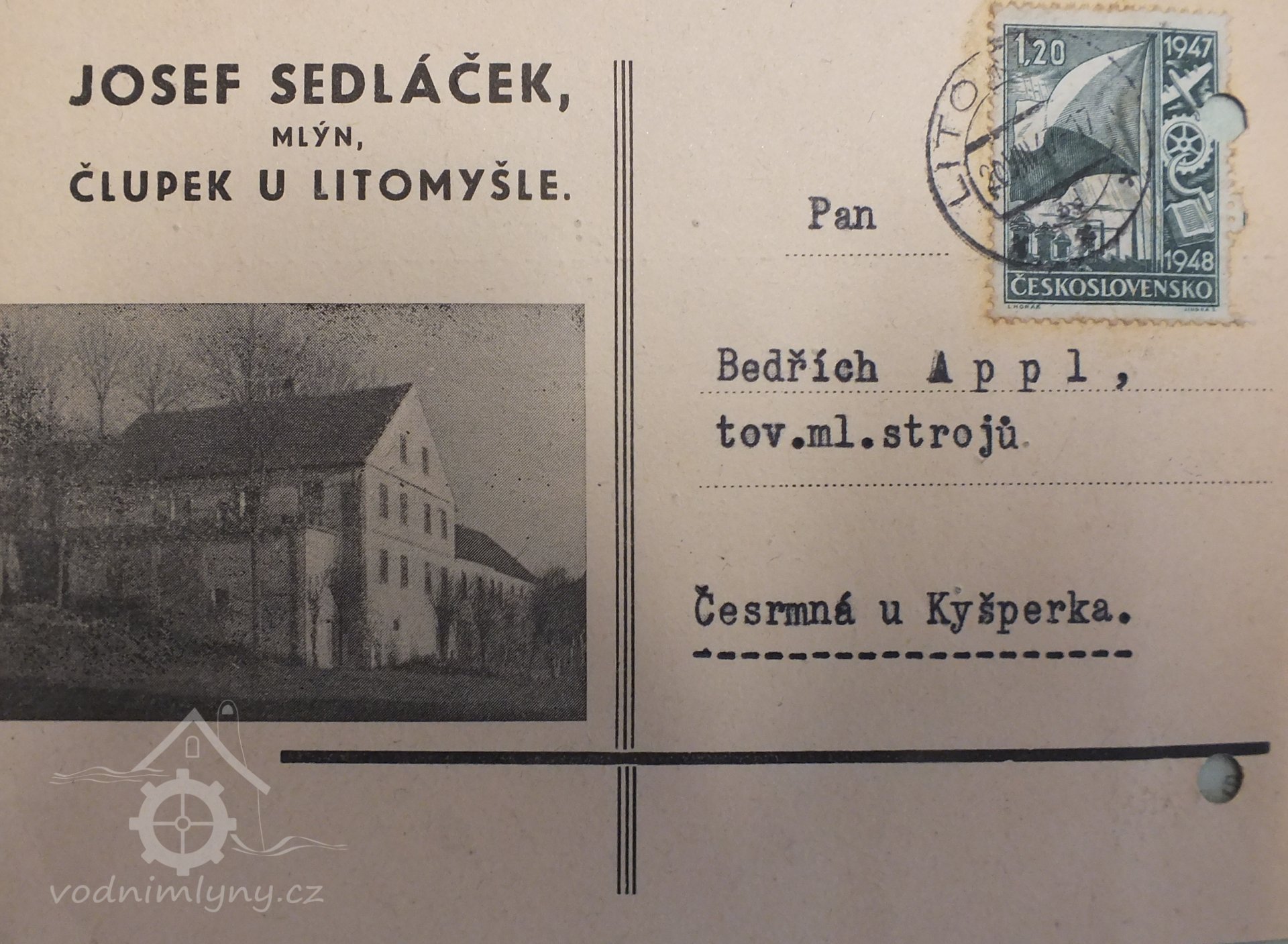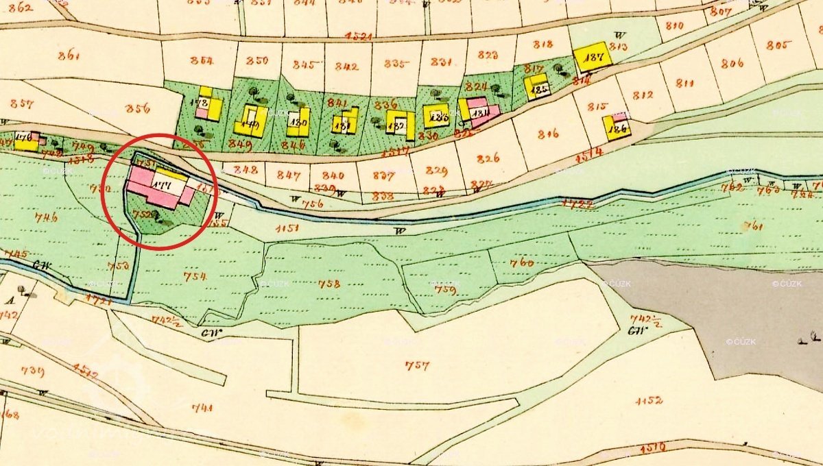 V roce 1930 je zde uváděn v seznamu vodních děl mlynář Josef Sedláček, mlýn.