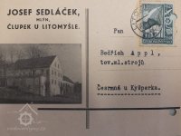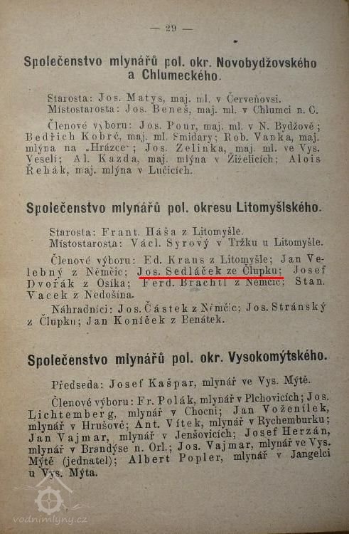 1899 - Jos. Sedláček, člen výboru Spolku mlynářů pol. okr. Litomyšlského (Fr. Duška, Kapesní kalendář mlýnů česko-moravských, r. 1899) (HŠ)