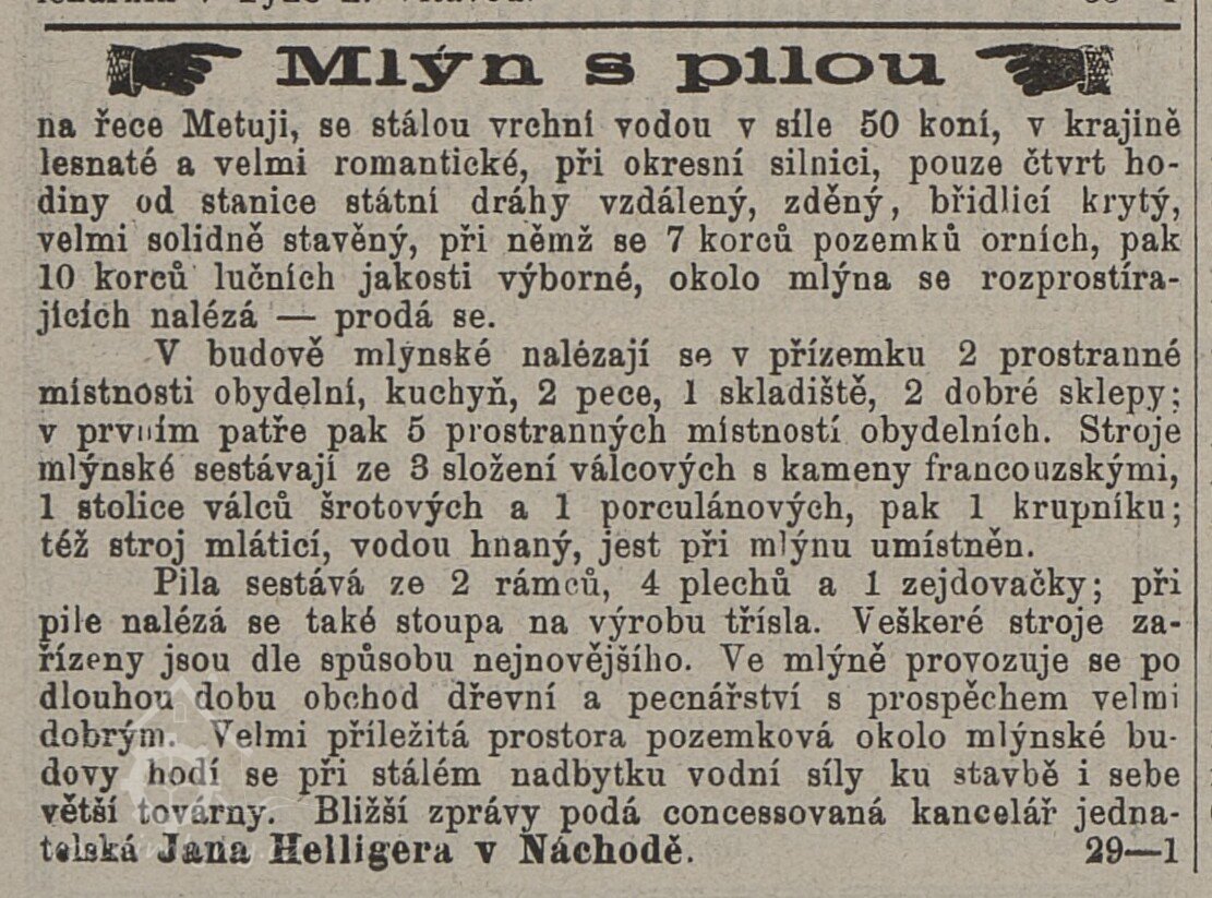 Dále máme zmínku o tom, že roku 1607 purkmistr a náchodští páni prodali urozené paní Anně Štanové z Dohalic kus louky za Velkým mlýnem za 14 kop míš.