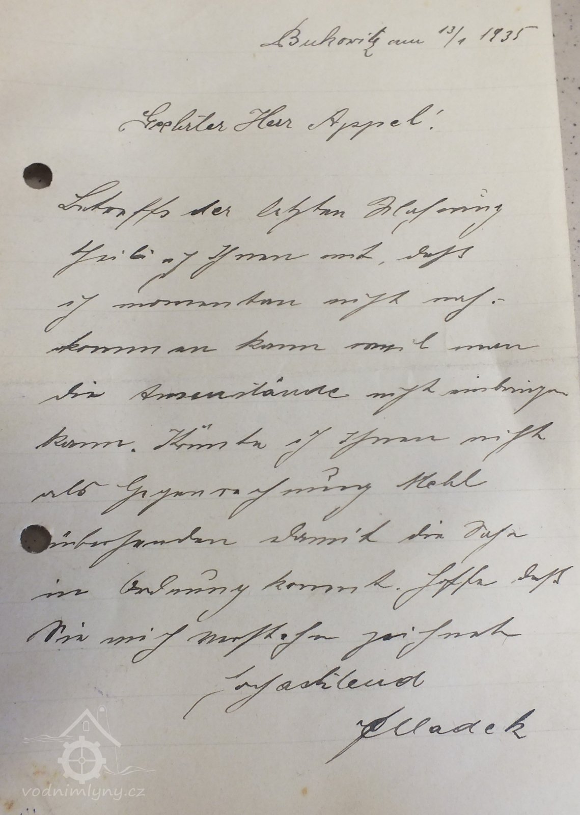 Od 30. října roku 1906 na mlýně hospodařil Josef Teuber.