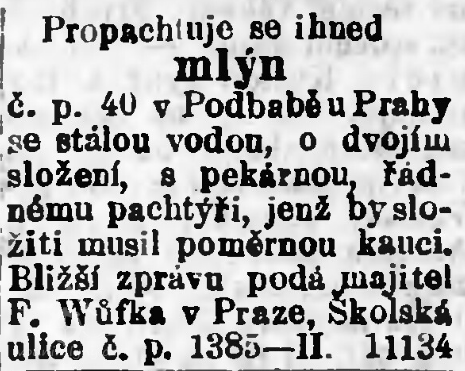Okolo r. 1884 vlastnil mlýn F. Wůfka.