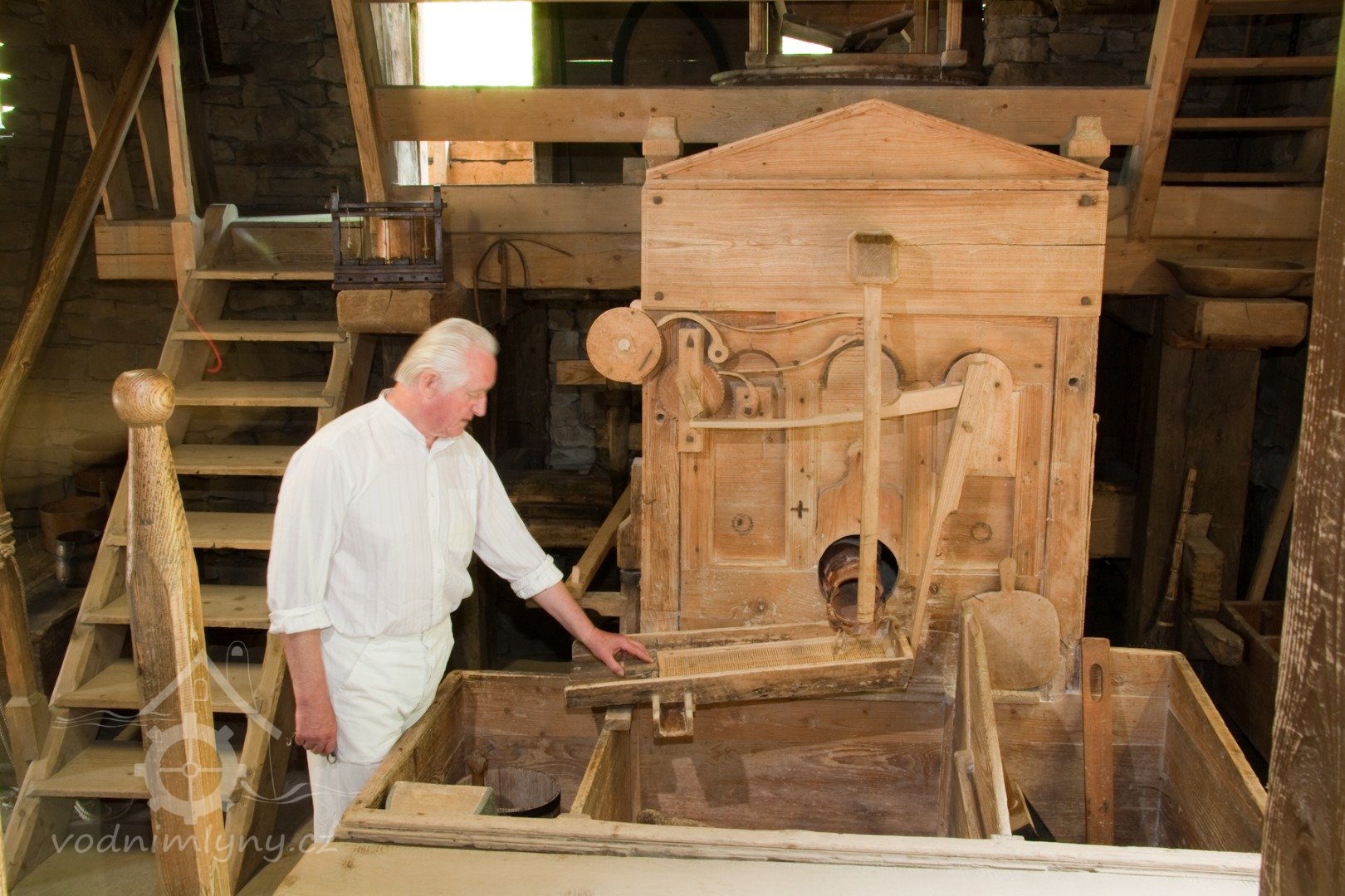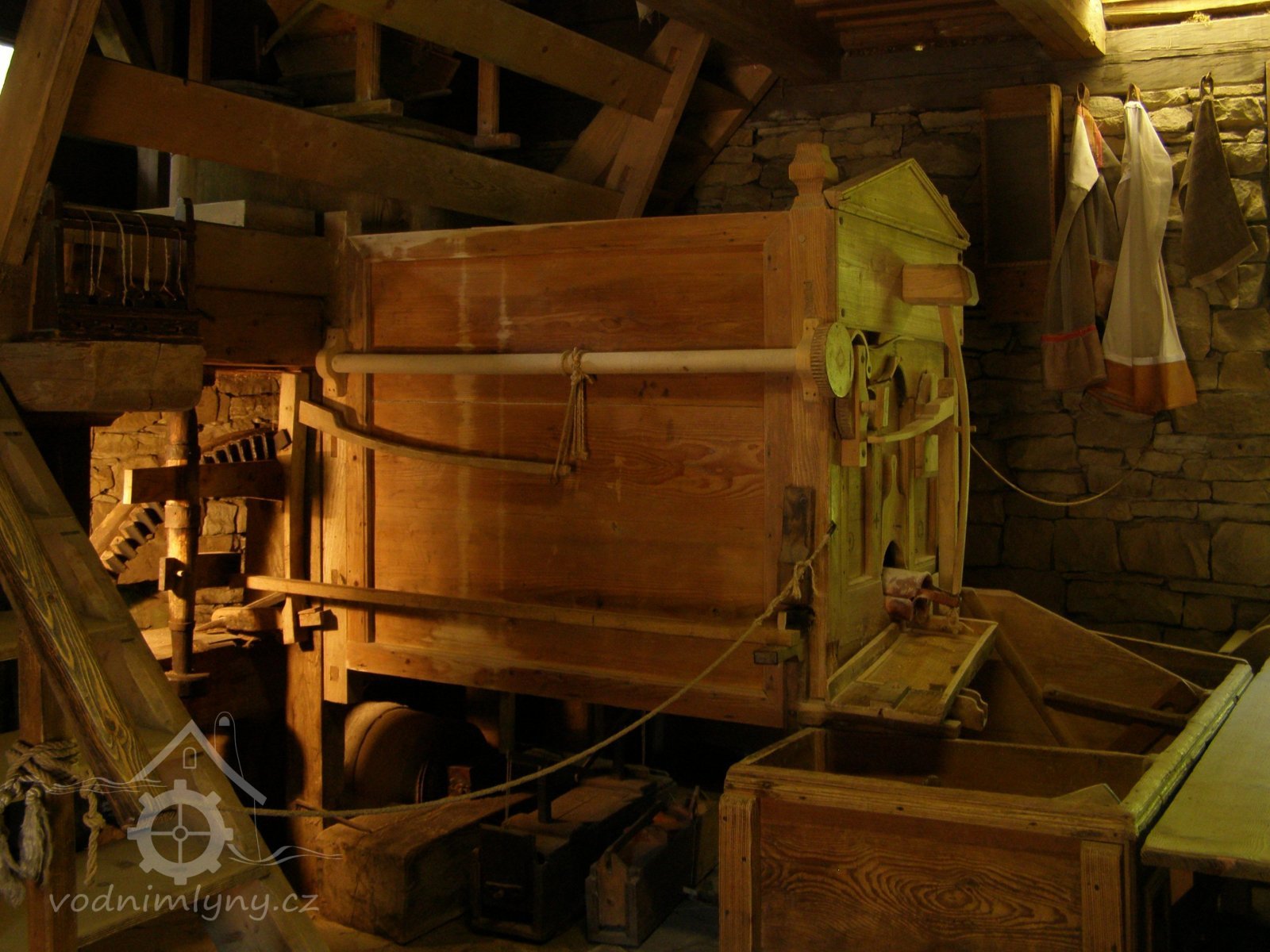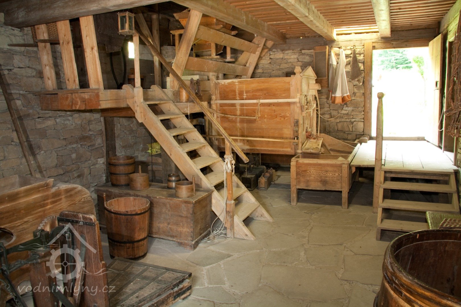 Zařízení mlýna, 10 2021, © www.nmvp.cz/roznov, (Prvky na obrázku: kamenné složení (šrotovací, mlecí), moučnice)