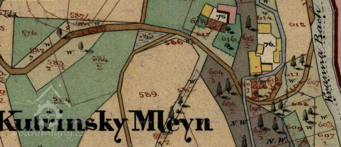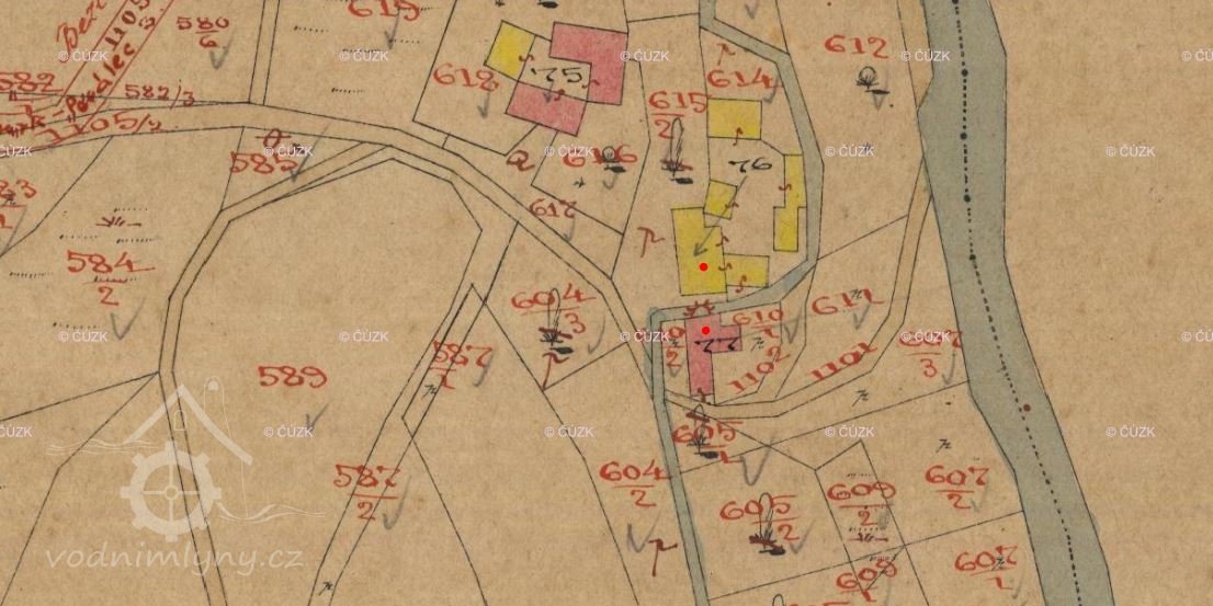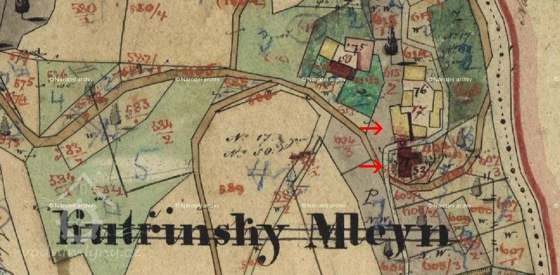 Původně byl mlýn v čp. 17, někdy po roce 1839 byla postavena nová mlýnice naproti s čp. 52. (RŠ)