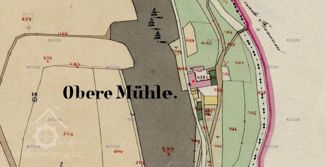 Blog.cz Broumov-Všude žijí lidé / Vzpomínky Arnošta Obsta na Olivětín, část 50./: "Často jsme se chodili máchat ze hřiště do náhonu protékajícího Vebou a pokračujícího pod Černou stezkou a ulicí Na Příkopech. Pod Černou stezkou byl mlýn, dnes opuštěný, kde voda z náhonu poháněla turbínu. Škoda jí, i mlýna."