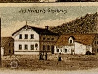 Mlýn přestavěn na hostinec, Gasthaus Heinzel, patřící významné rodině Heinzelů z Hynčic a Jetřichova, ačkoli dům byl už na katastru obce Hejtmánkovice (Petr Bergmann)