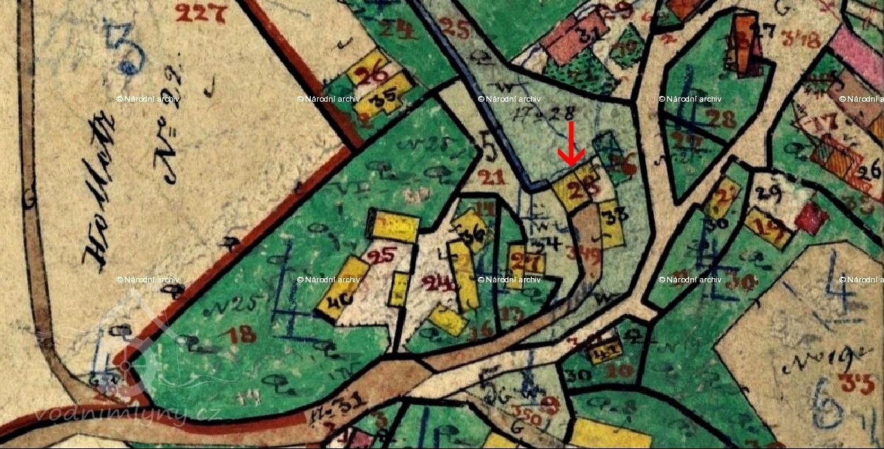 Popis1930: 1 kolo na svrchní vodu, hltnost 0,05 m3/s, spád 6,89 m, výkon 3 HP
