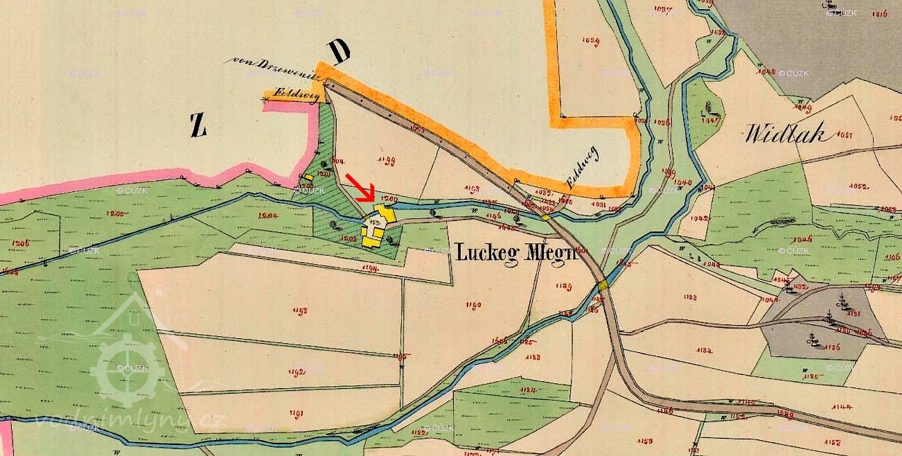 Popis1930: 1 kolo na svrchní vodu, hltnost 0,079 m3/s, spád 6,55 m, výkon 4,1 HP