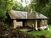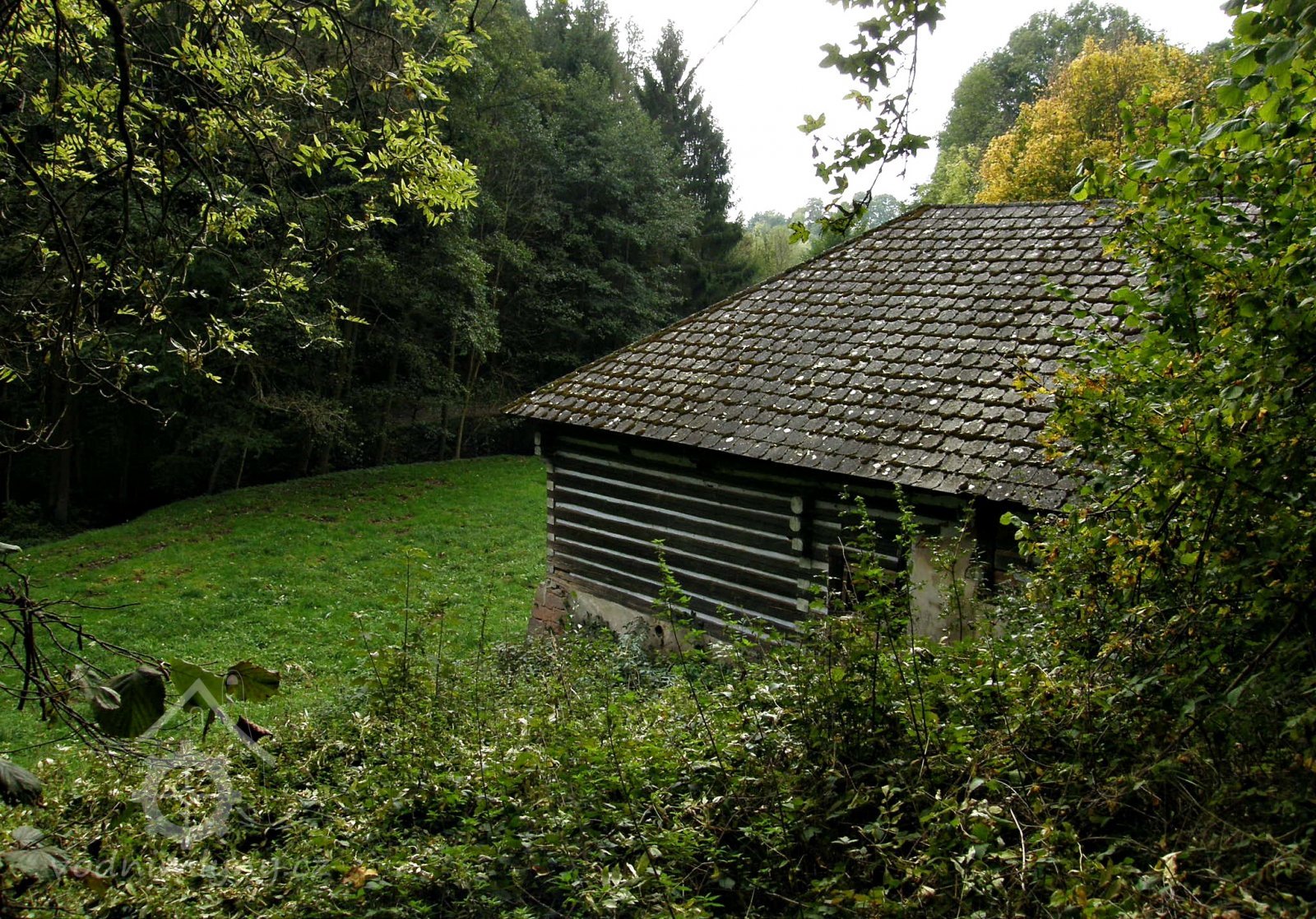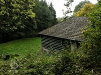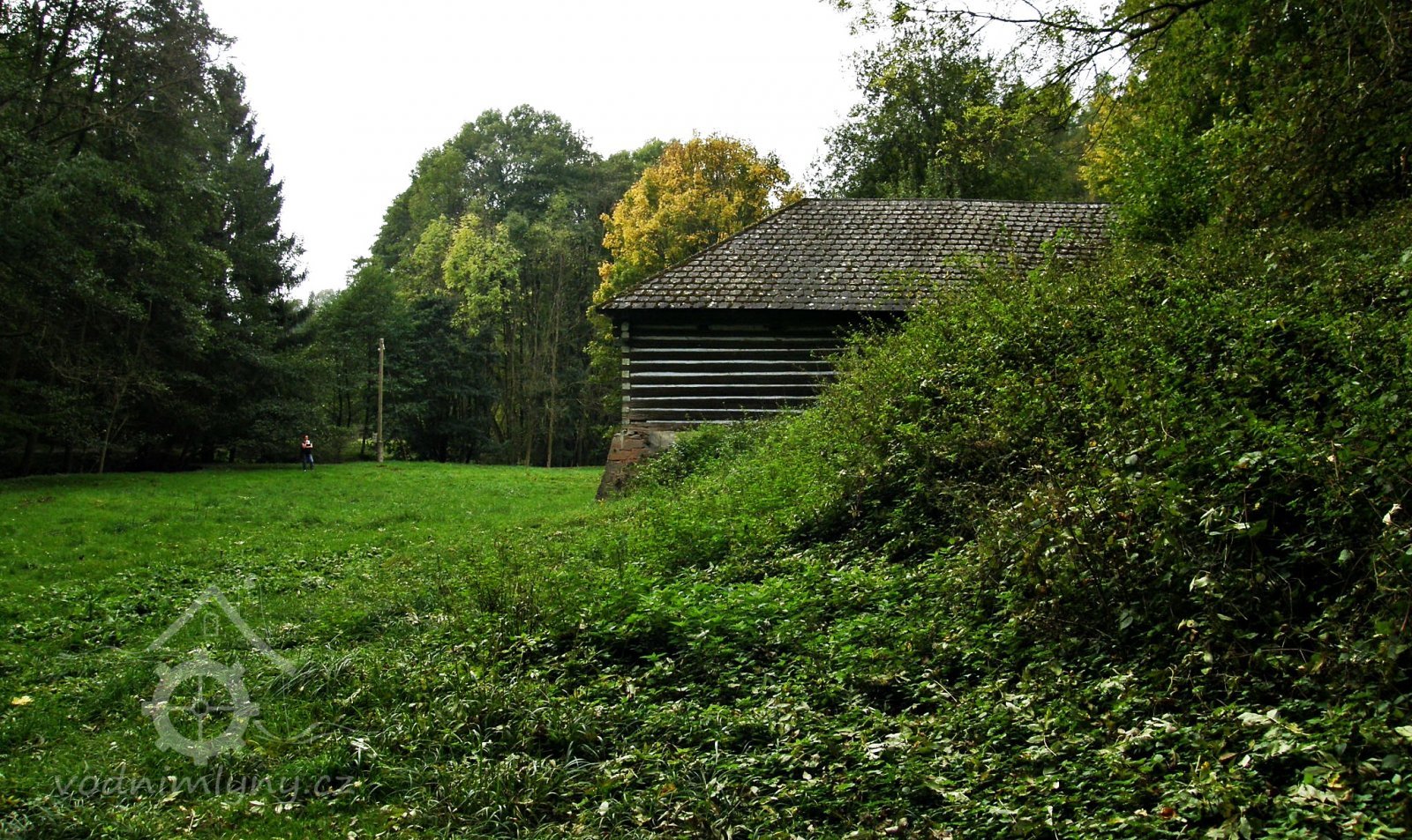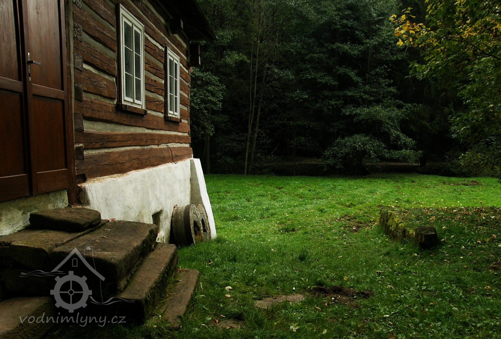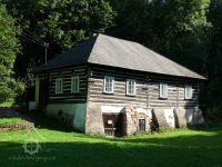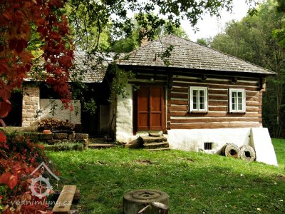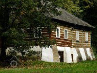 Malebný roubený mlýn v lesích na konci obce.