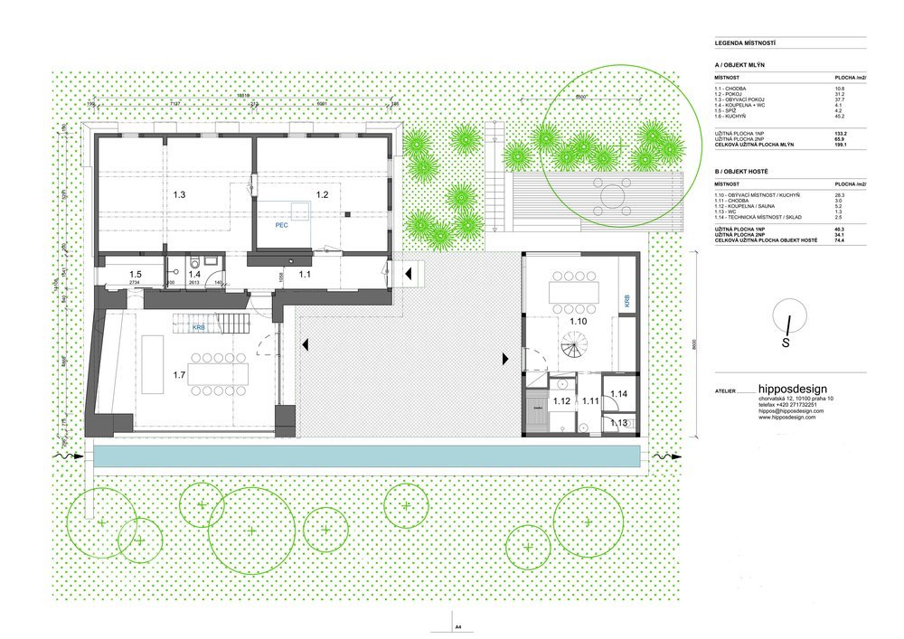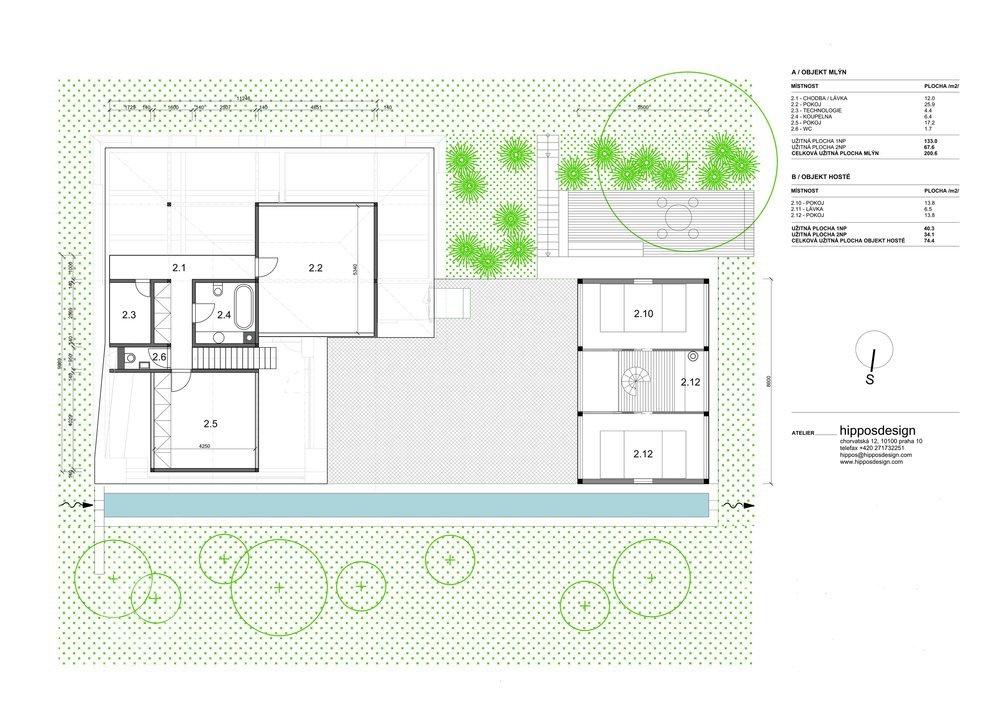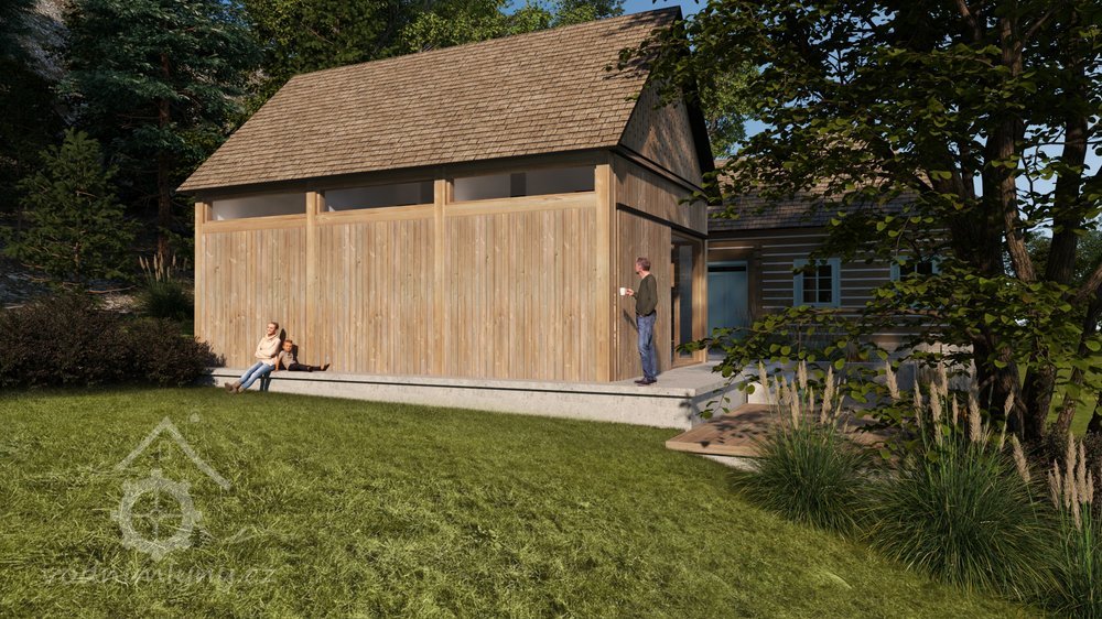 Historie Bílkova (hořejšího) mlýna stojícího na samotě u lesa na konci vesnice Tužín v části obci Radim v okrese Jičín sahá do poloviny 18. století. Mlýn měl původně dřevěnou pavlač a jedno vodní kolo. V roce 1868 mlýn vyhořel a jeho nový majitel František Vágner zde postavil mlýn nový. Stavba byla od původního mlýna menší, za to však s větším vodním kolem a sloužil ke svému účelu až do roku 1930. Po následujícím majiteli Janu Řehákovi, mlýn využíval k rekreaci výtvarník Stanislav Holý s rodinou. Současní majitelé mlýna manželé Tučkovi, chtějí atmosféru rodinné pohody a setkávání přátel na tomto místě zachovat. Stav objektu si však k jeho dalšímu užívání vyžaduje citlivou rekonstrukci. Vzhledem k tomu, že je mlýn na seznamu nemovitých kulturních památek, bude veškerá jeho projektová dokumentace konzultována s příslušnými úřady, prováděcí projektovou dokumentaci bude dle naší autorské studie připravovat specialista na historické konstrukce, realizaci provede firma s letitou zkušeností v oblasti historických roubených objektů. S rekonstrukcí historického mlýna navrhujeme souběžně provést i celkovou revitalizaci jeho okolí. Po prvotním seznámení řešeného území jsme zjistili, že součástí mlýna byl v jeho historii i objekt stodolky, která sloužila z největší pravděpodobností jako jeho technická budova a sklad mouky. Bohužel k tomuto objektu se již žádná historická dokumentace nedochovala a v současnosti není ani vedena v registru katastrálního úřadu. Vedle mlýna je však stále čitelný půdorys kamenné podezdívky. Našim dalším cílem na pozemku je tedy mimo rekonstrukce mlýna navrhnout na původním půdorysu stodolku zcela novou sloužící pro příležitostné ubytování přátel majitelů mlýna.