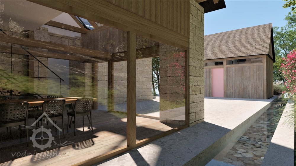 • prostup pro hřídel vodního kola