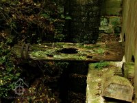 Z obyčejného složení dochována mlýnská hranice, torzo hřídele vodního kola a paleční kolo. (RUr)