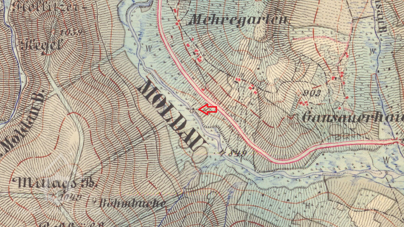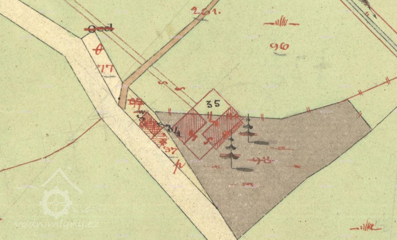 Mlýn je pouze dodatečně vkreslen do Císařského povinného otisku, vznikl tak až po roce 1837.