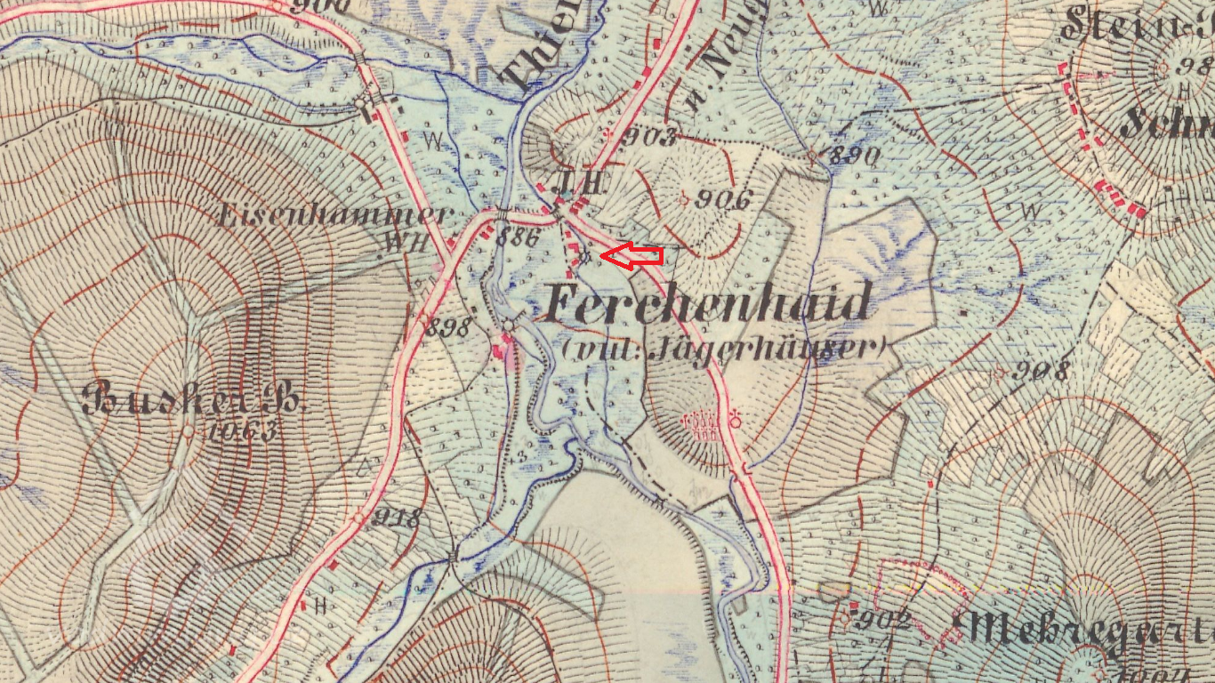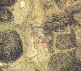 Skupina obytných domů a hospodářských budov v k.ú.Borová Lada.Zobrazena na mapě Stabilního katastru :Čechy:0387-2-Borová Lada,mapový list č.005.