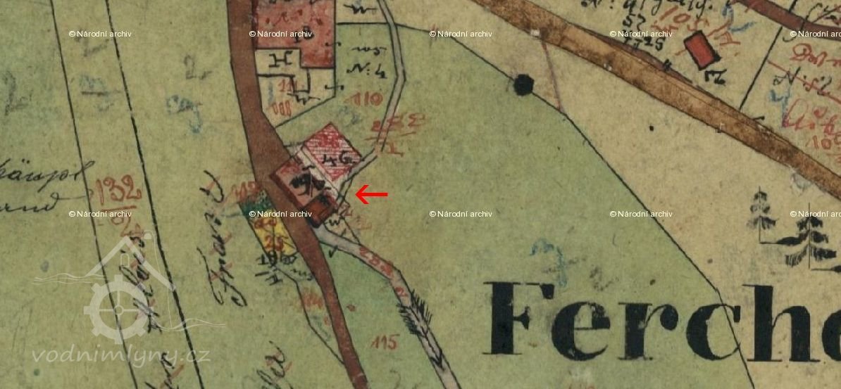 PopisV roce 1930 mlýn pohánělo 1 kolo na svrchní vodu, průtok 0.16 m3/s, spád 3.56 m, výkon 5 HP.