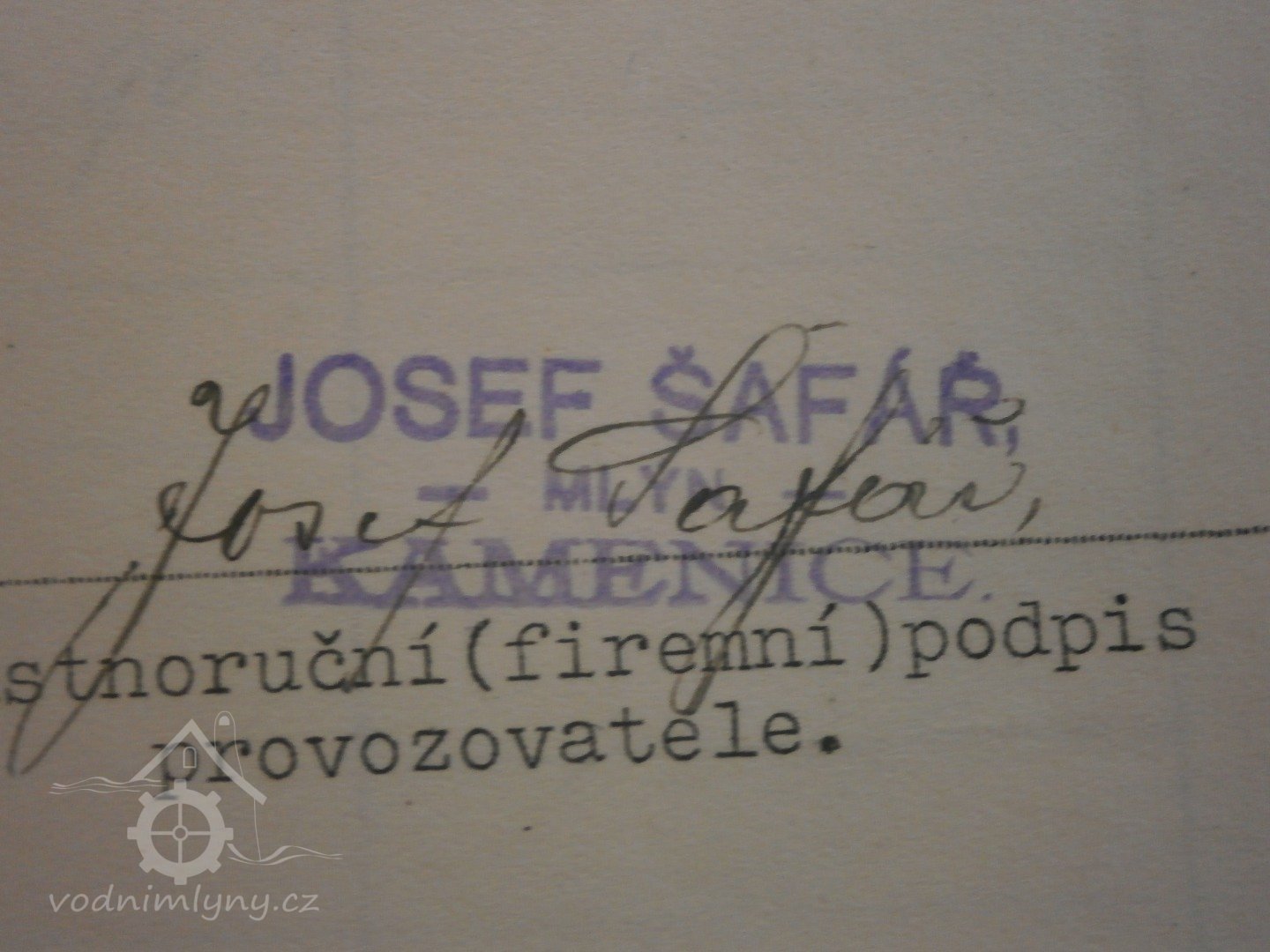 Dcera mlynáře Votroubka provdala se za Šafáře, který roku 1904 byl přijat za kamenického občana.
