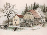 Mlýn z roku 1858 na Zlatém potoce u Kamenice. V průběhu doby modernizován.