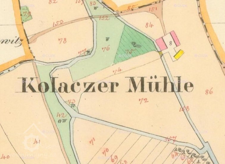 Mlýn není Koláčkův, ale zvaný Koláček podle tvaru přilehlého rybníka. (František Václav Peřinka, Vlastivěda Moravská - Zdounecký okres)
