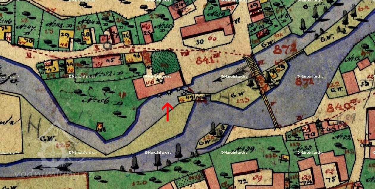 Popis1930: 1 turbína Francis, hltnost 1,6 m3/s, spád 1,3 m, výkon 24,7 HP