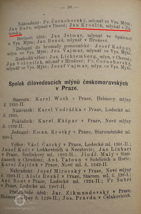 1899 - Jan Kroulík (Fr. Duška, Kapesní kalendář mlýnů česko-moravských, r. 1899) (HŠ)