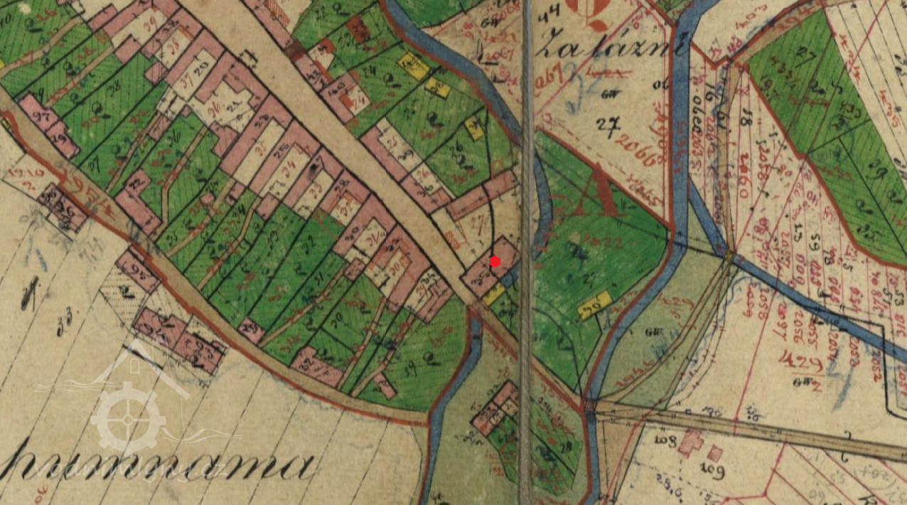 V roce 1841 postavil budovy mlýna a pily Jozef Růžička (viz zápis na omítce)