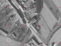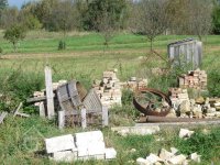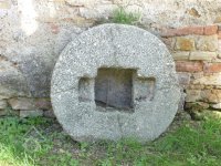 Na místě zbořené budovy leží torza zařízení mlýna. Před branou mlýna je mlecí kámen.