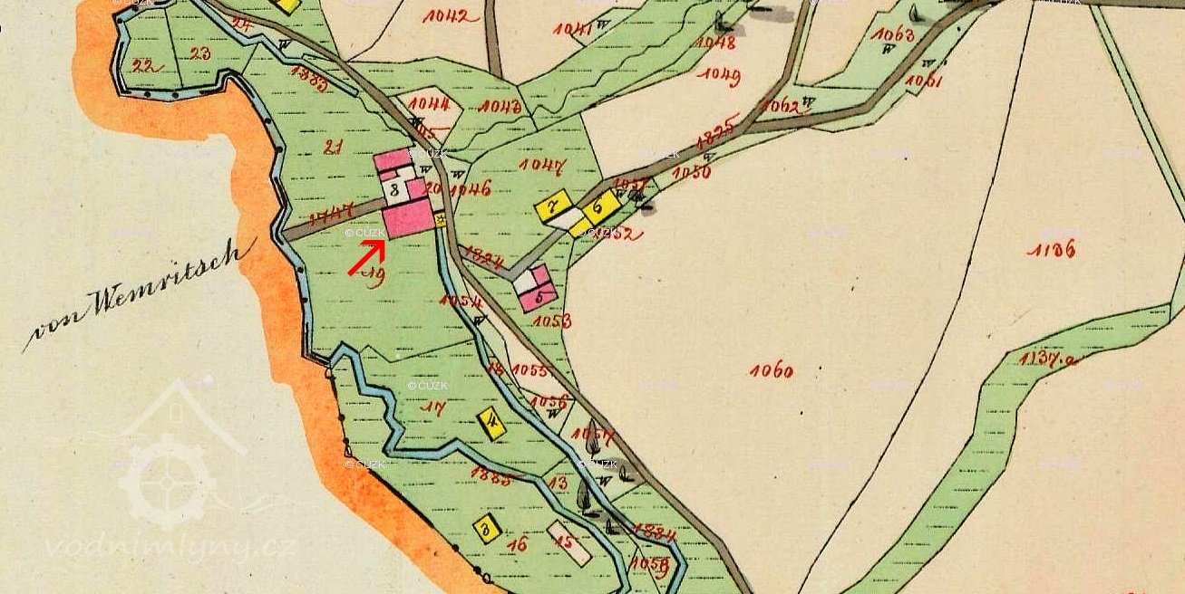Popis1930: 1 kolo na svrchní vodu, hltnost 0,66 m3/s, spád 3,8 m, výkon 2,7 HP