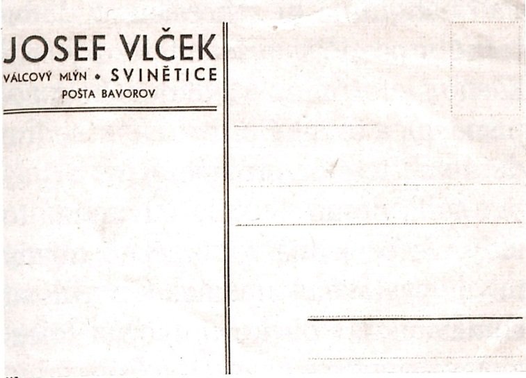 poč. 1923 mlýn zakoupil zeť Josef Vlček (1880, Útěšov čp. 7 - únor 1937)  s Růženou roz. Zimovou (1890 - 4.11.1941; oo 31.10.1916) ze Svinětic čp. 1