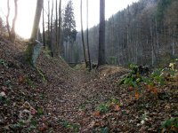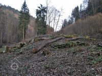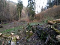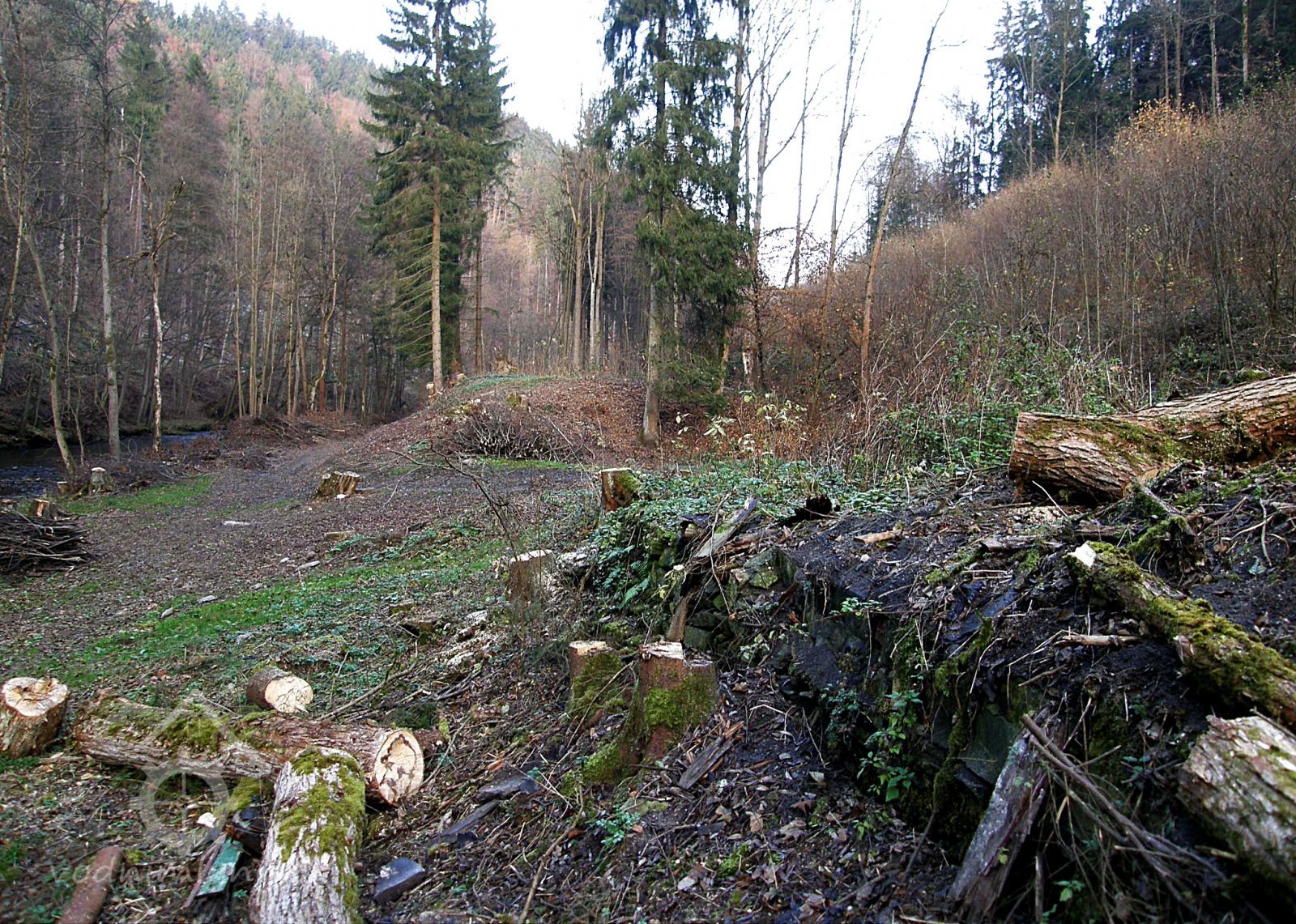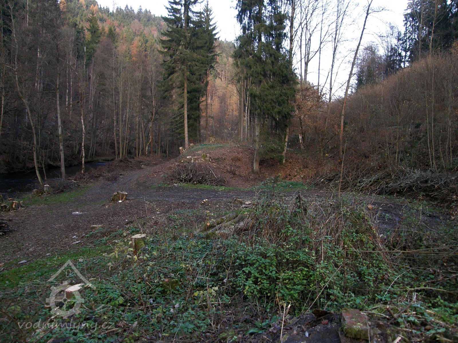 Zaniklý mlýn u Podspálova. Dodnes se zachovaly pouze zbytky základového zdiva pod železniční tratí Železný Brod - Tanvald a hluboký náhon.