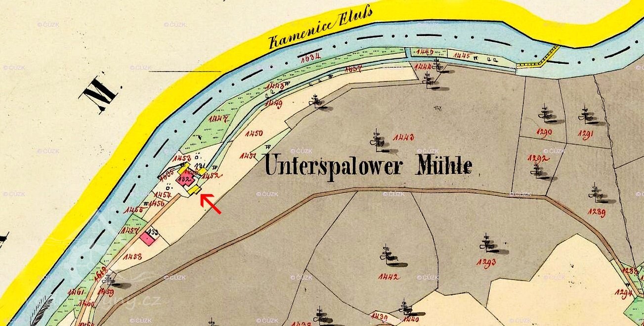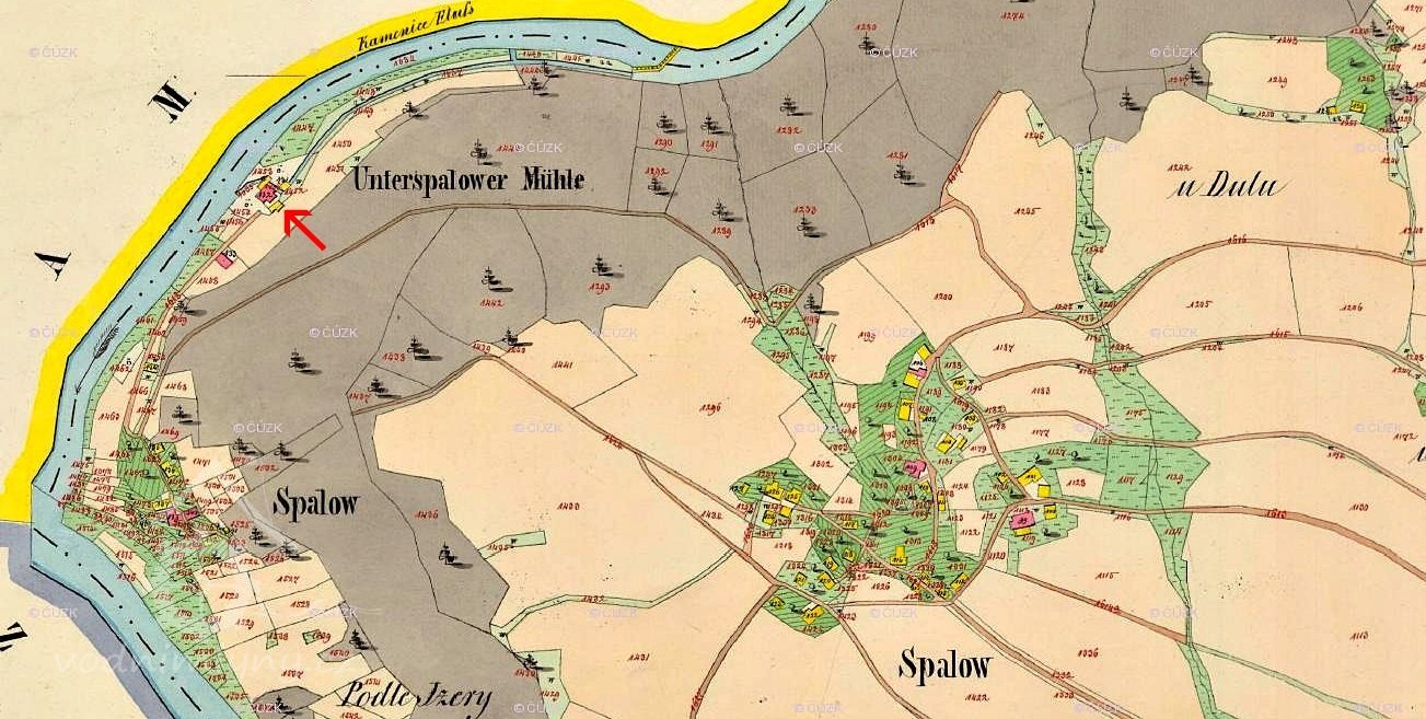 Mlýn se nacházel zhruba 400 m severovýchodně od podspálovské hydroelektrárny.