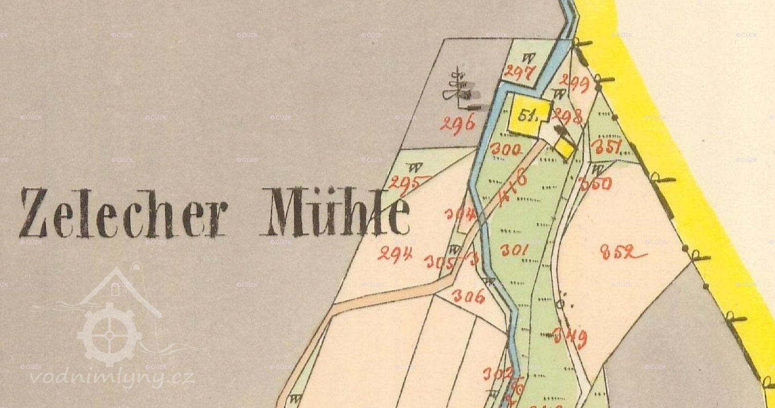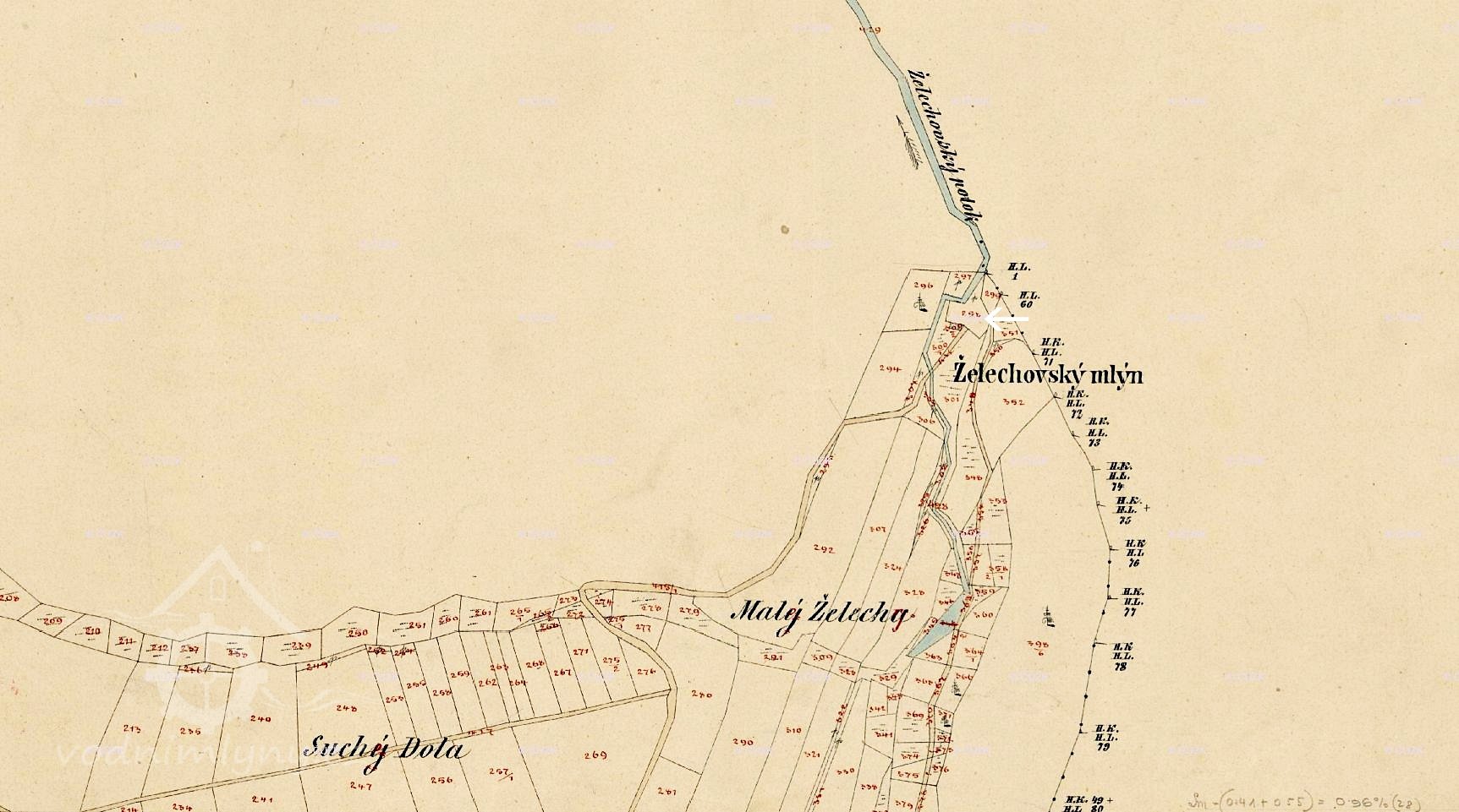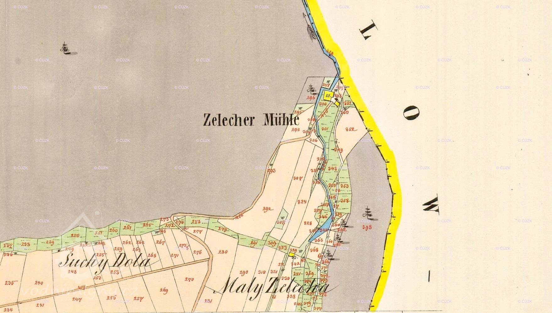 Zaniklý mlýn na Želechách u někdejších Rudolfovic (dnes Želechy). Nacházel se v mírně otevřeném údolíčku potoka. Dodnes se z něj nic nezachovalo.
