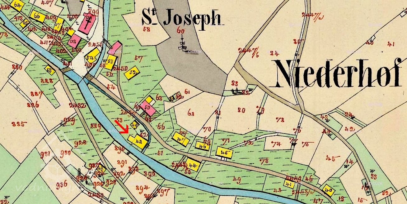 Mlýn se nachází necelých 200 m jihovýchodně od kostela sv. Josefa.