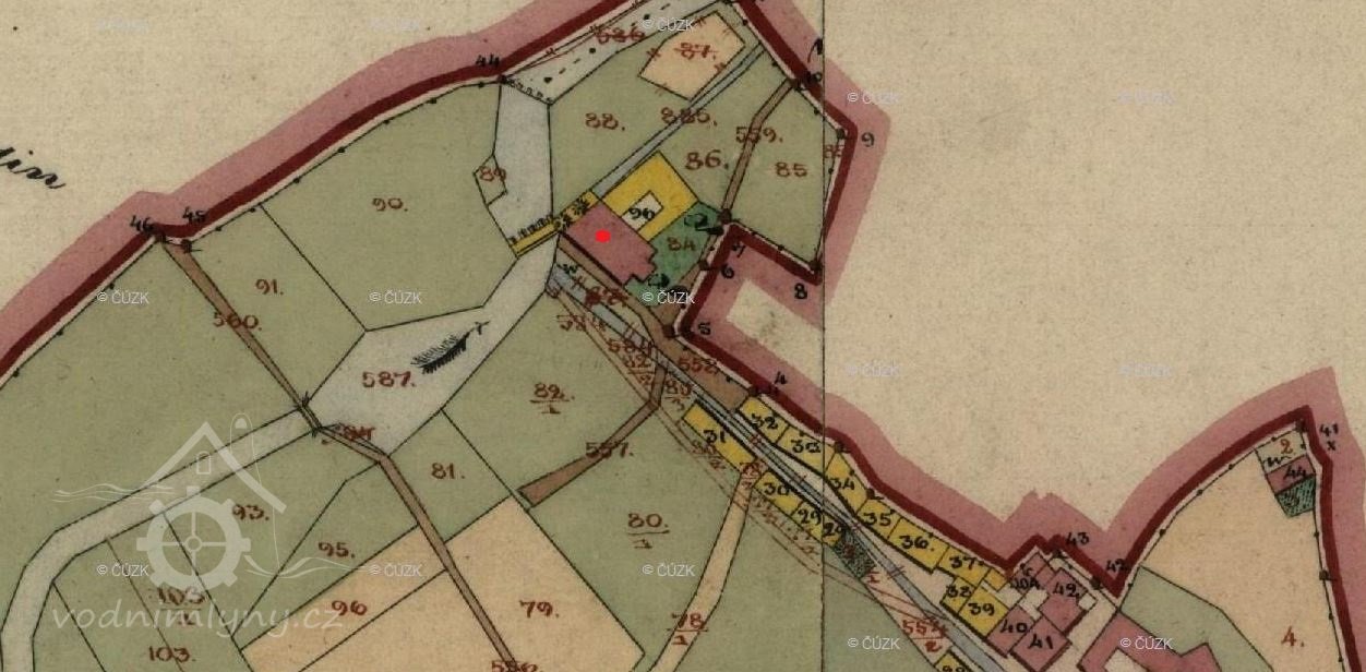 Popis1903: jedno kolo na spodní vodu v průměru 3,5 m. Šířka věnce obnáší 1,5 m; níže pila, jejíž kolo měří 3 m