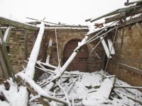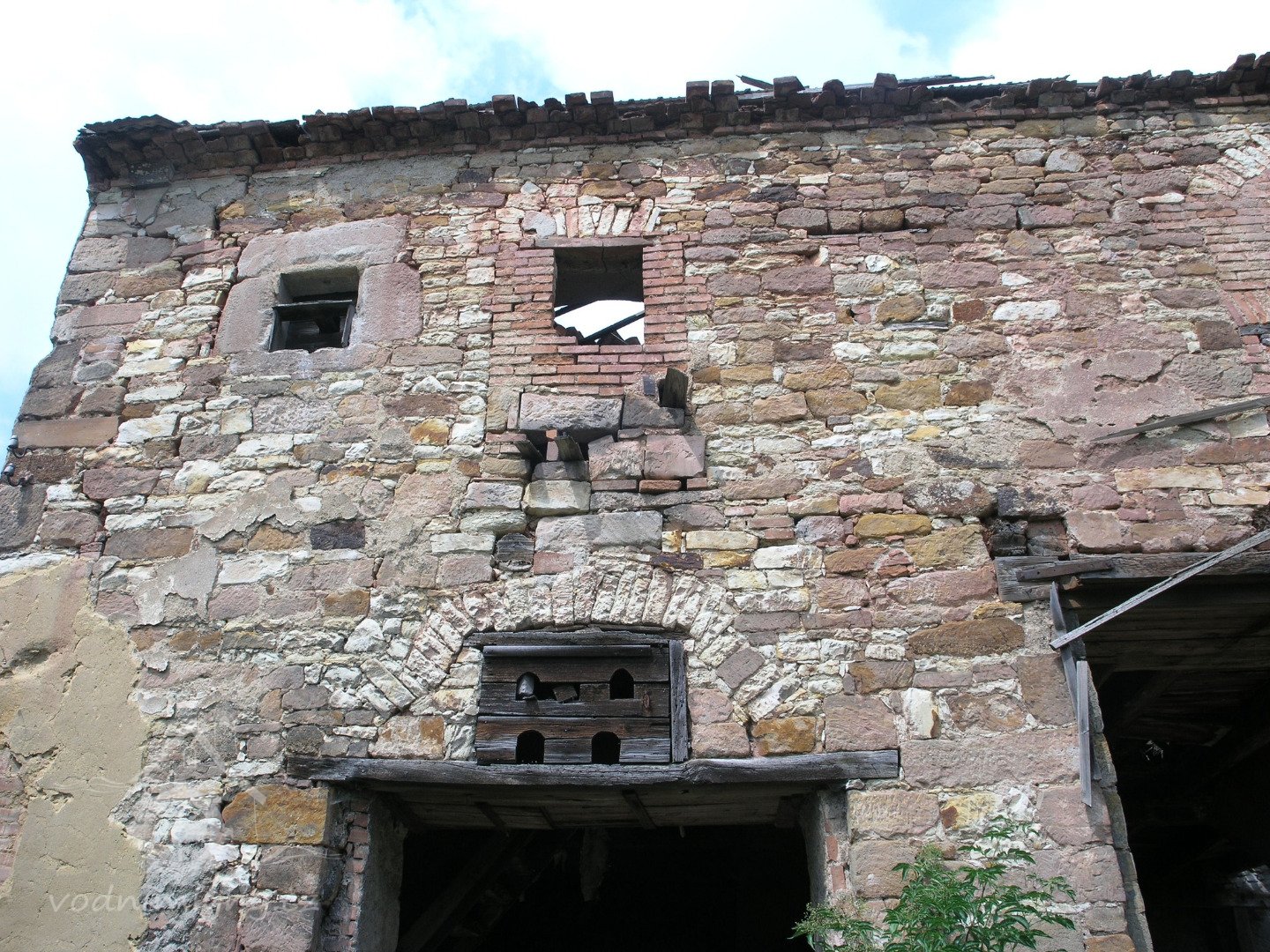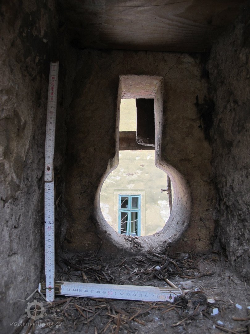 Dvojice kamenných střílen nad sebou v budově „A“ mohla být v původní situaci, ale nutně nemusela. Střílny neměly obrannou funkci (!), ale sloužily k provětrávání interiéru „sýpky“. Nezbývá než politovat, že se mlýn nepodařilo včas zachránit. Pokud je m i známo, o existenci kamenných střílen nikdo nevěděl, protože v době vegetace je zakrývala treláž pro vinný keř. Z veřejné komunikace bylo vidět pouze okénko na fasádě vlevo.