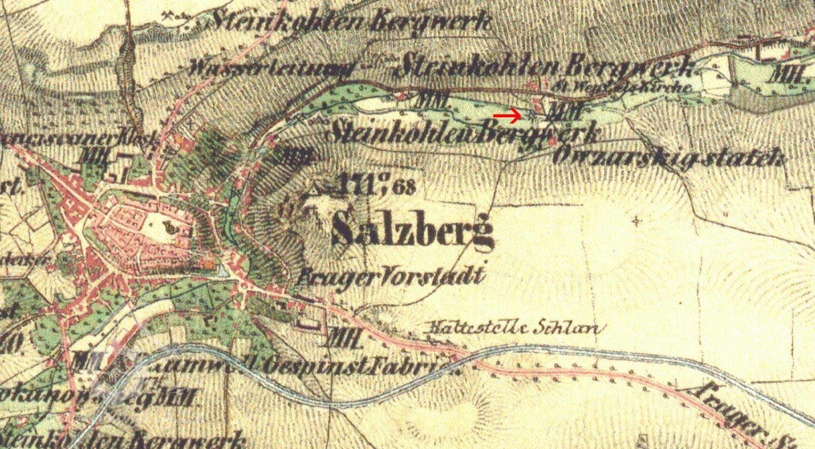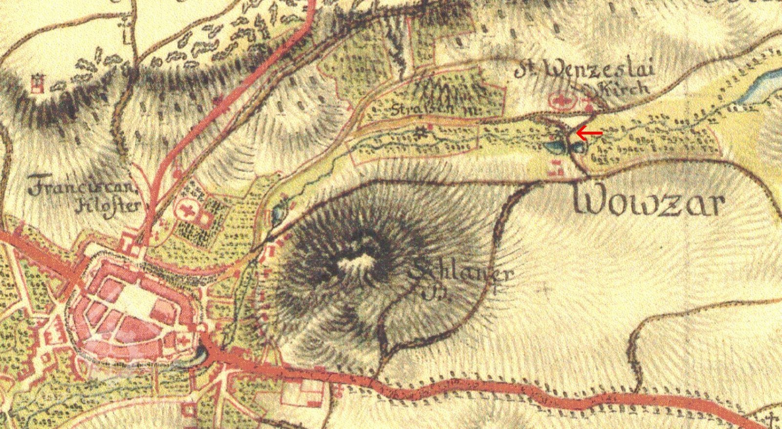 1,4 km ZSZ od autobusáku ve Slaném