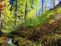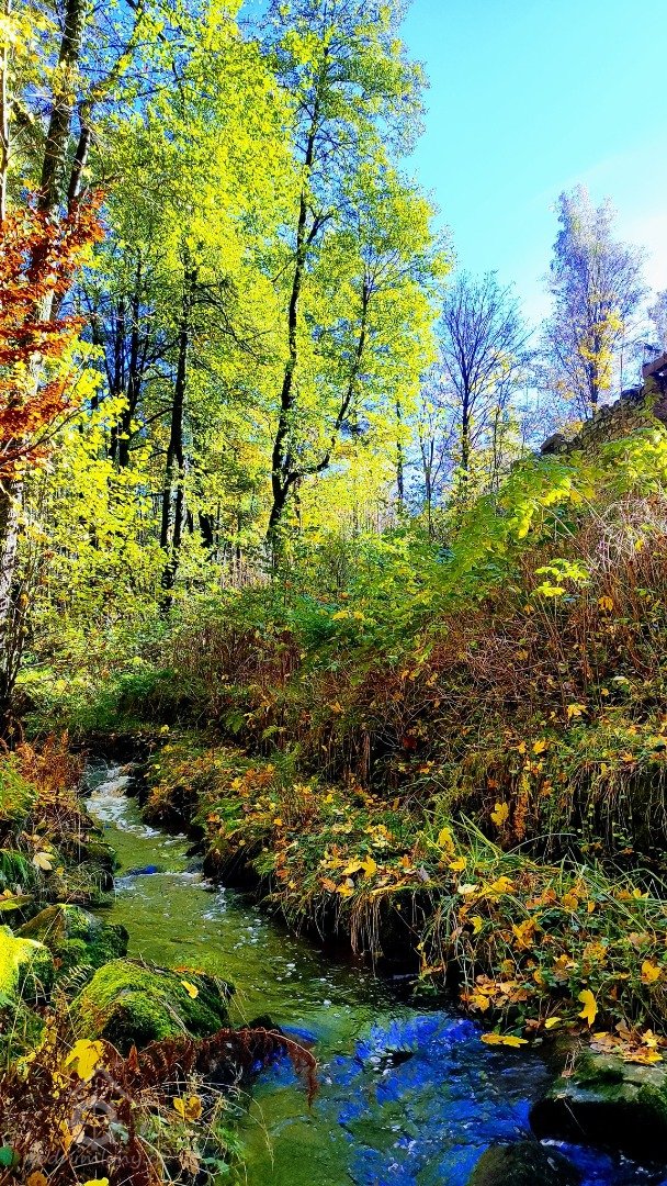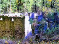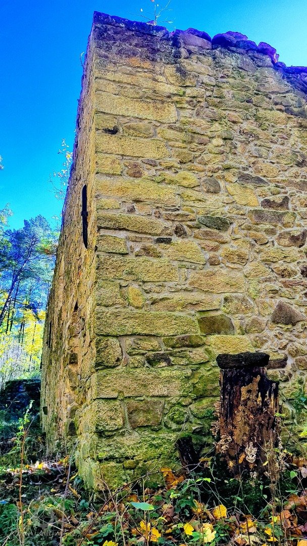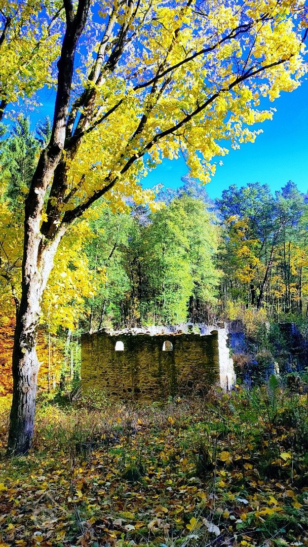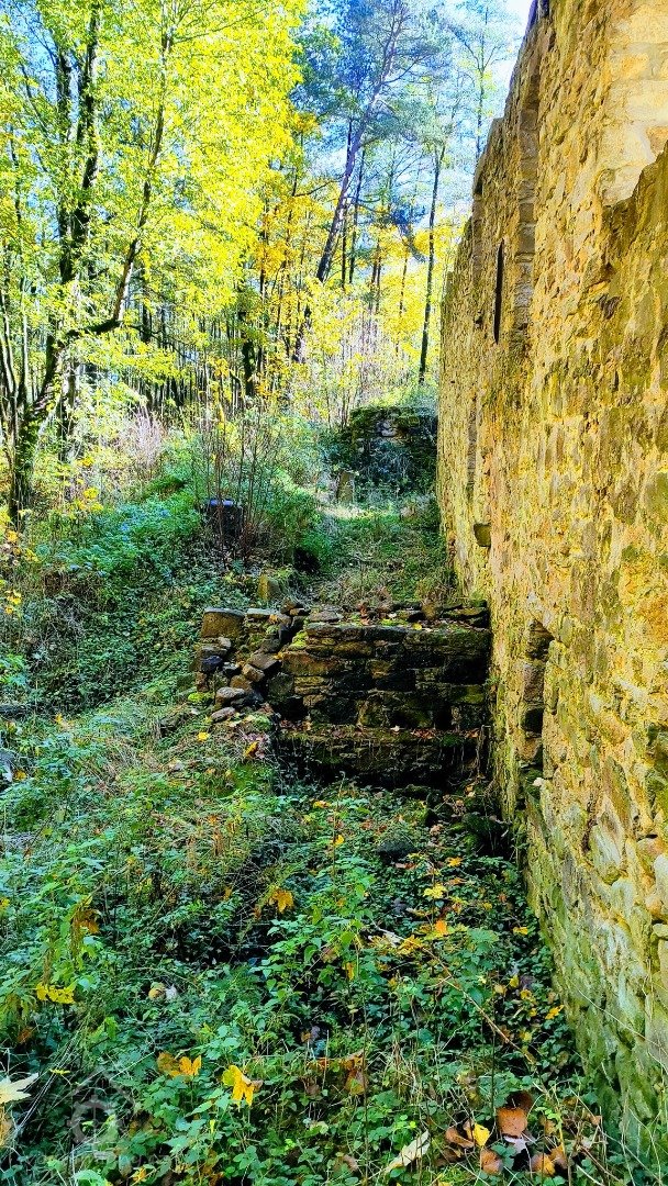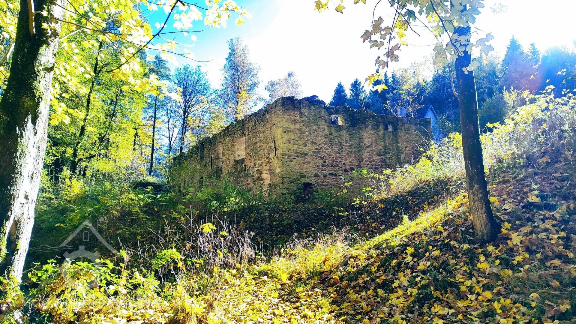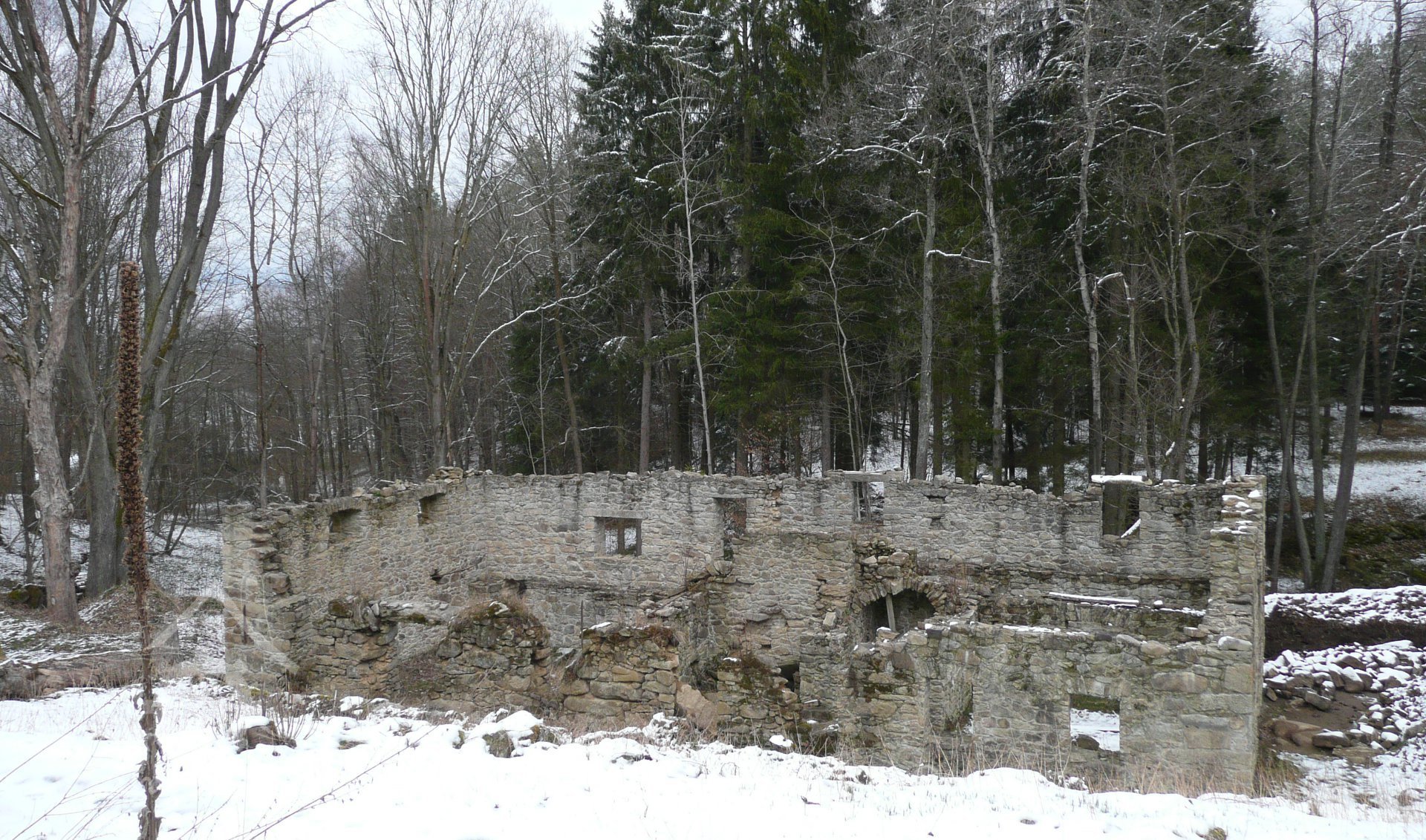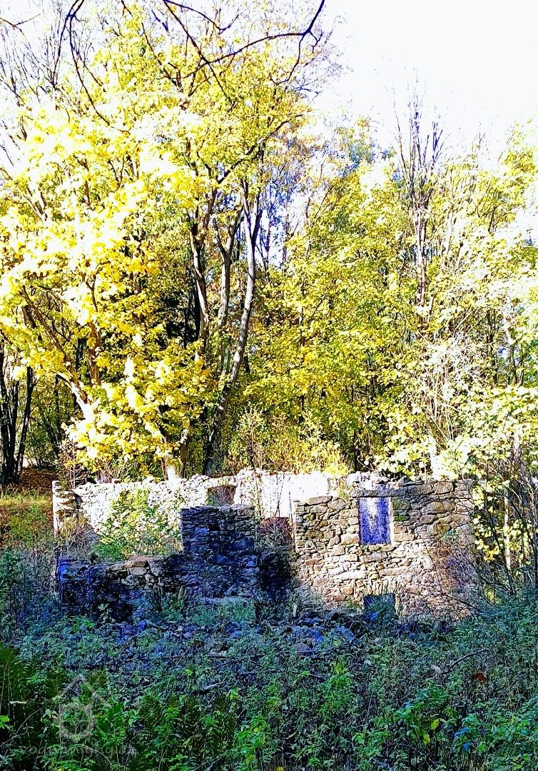 Mlýn na Klenském potoce. Technické vybavení mlýna neexistuje, pouze zachovalé zdivo.