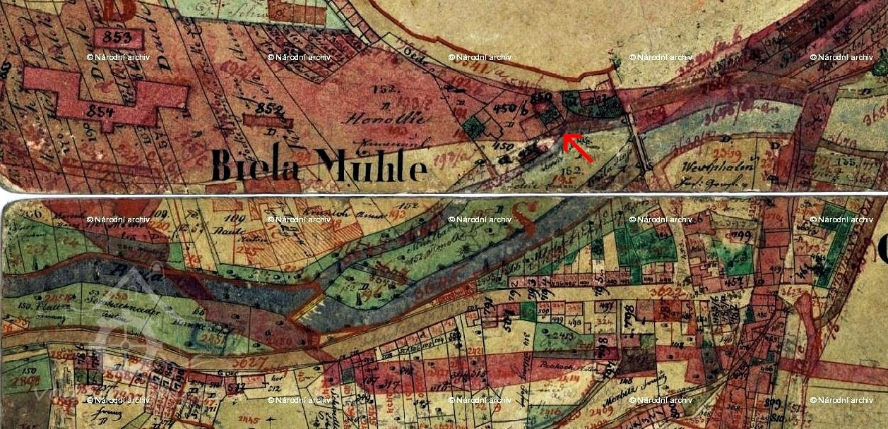 Mlýn uveden na Císařských povinných otiscích, Indikační skice, II. vojenském mapování (HŠ)