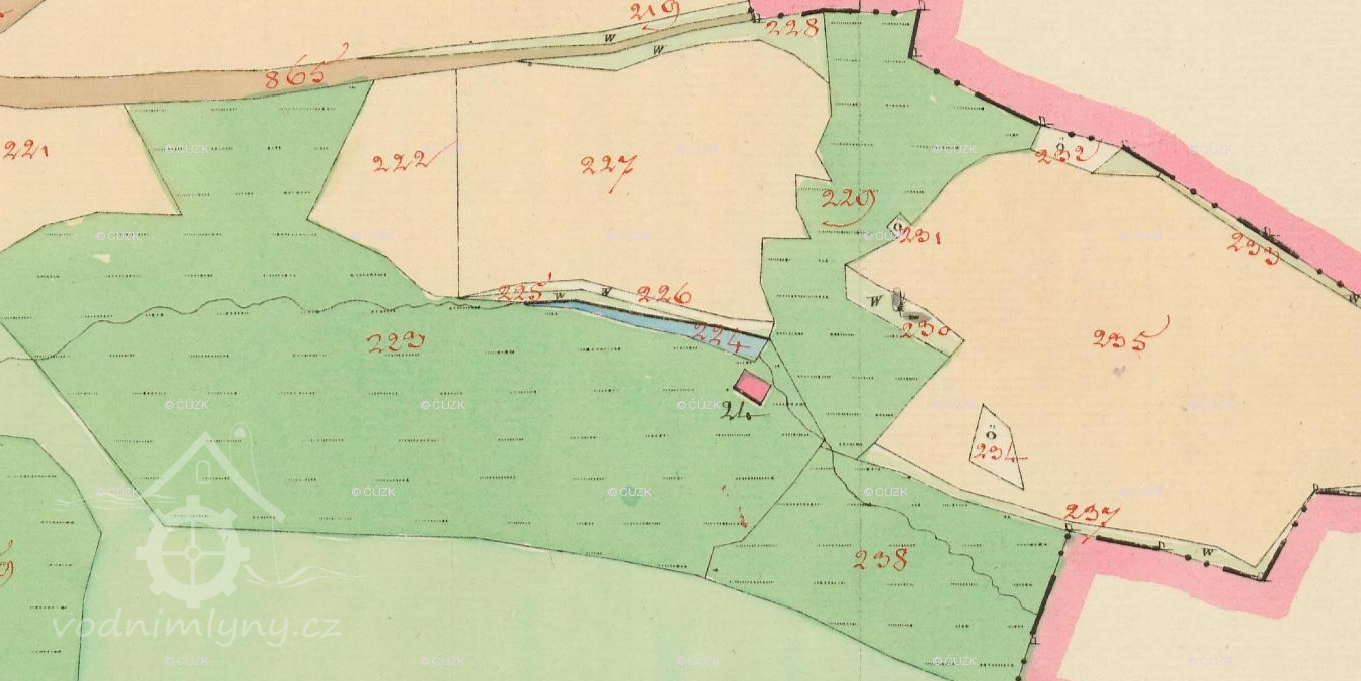 PopisV roce 1930 mlýn pohánělo 1 kolo na svrchní vodu, průtok 0.13 m3/s, spád 4 m, výkon 4.5 HP