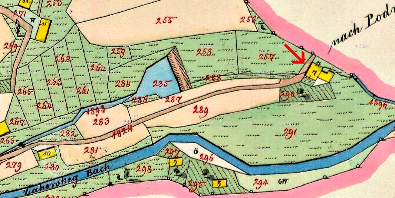 Zaniklý mlýn čp. 79 na spodním konci obce.