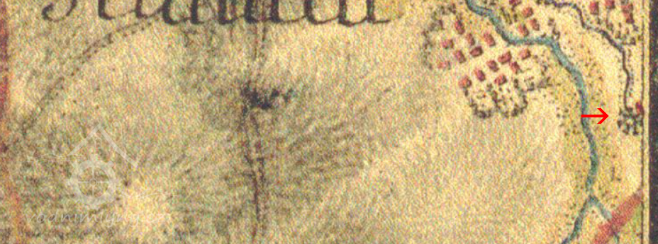 1411 erekční knihy pražského arcibiskupství: louka s chmelnicí, kterou daroval Mikuláš Nýrský toho roku na zřízení oltáře svatých panen Barbory, Apoleny, Anežky a Lucie v kapli svaté Háty u klatovského farního kostela, ležeka mezi břehy potůčku přitékajícího do vsi Lub pod mlýnem Smyslem. (Šlo o břehy obou mlýnských stok, hořejší a dolejší, mezi nimiž se ještě v 16. a 17. století rozkládaly louky a chmelnice.)