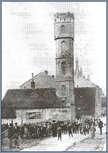 Vodárenská věž bývala původně dřevěná, po požáru vystavěna nově jako zděná, zanikla spolu s mlýnem krátce po roce 1900.