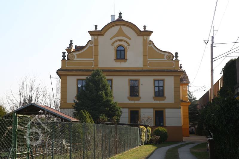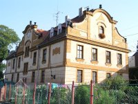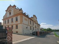 Obdélný, jednopatrový, zděný a omítaný. Rozložitá stavba s dvěma šíty u užších stran a dvěma menšími štíty u podélných stran. Fasády vertikálně členěny ploše bosovanými pásy, horizontální členění podokenní s mezipatrovou pásovou římsou a profilovanou římsou hlavní. Mezi okny plochá pásová bosáž. Okna v rámech s uchy a lištou, parapety s čabrakovými motivy. Okna ve štítech doplněna ještě kanelováním s píšťalami, zvláště u suprafenester. Štíty s esovitými křídly, spočívajícímu na atice, na okraji atiky váza. Půlkruhem proložený štít taktéž s vázami. Malý štít na východní straně trojúhelného tvaru s rozměrnou kartuší ve vrcholu.