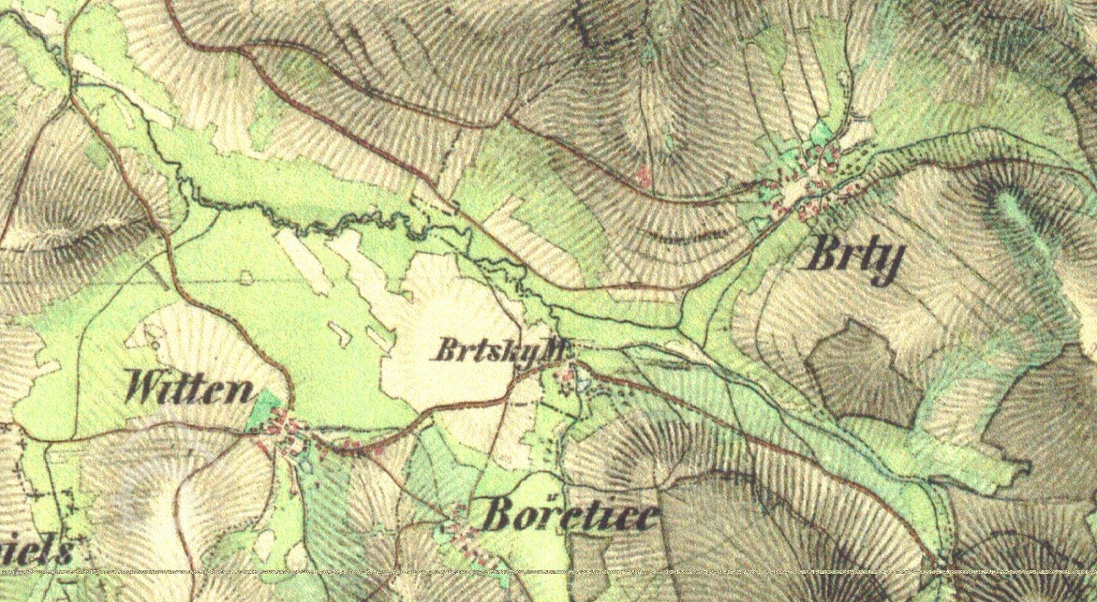 V kronice města Strážova poprvé zmíněn v roce 1409. Tento mlýn na horské bystřině tekoucí od Němčic má popisné číslo 17 obce Brtí u Strážova. Dříve mu říkali i mlýn Víteňský, podle sousední obce Víteň. Stojí na přítoku Zámeckého - dnes Strážovského - potoka. V dědické smlouvě opáleckých pánů hrabat Šternberků z roku 1577 je označen jménem mlynáře - Moučkův. První známý mlynář na Brtském mlýně byl tedy v této době Moučka.