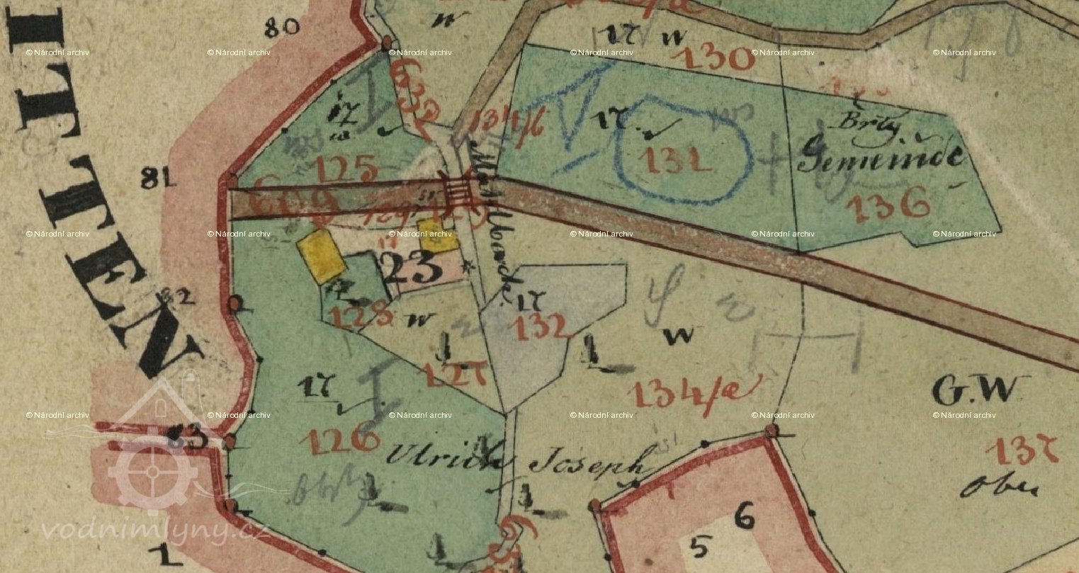 1816 Josef Uldrich přikoupil ke mlýnu louku o rozloze 6 měr od víteňského dvora.