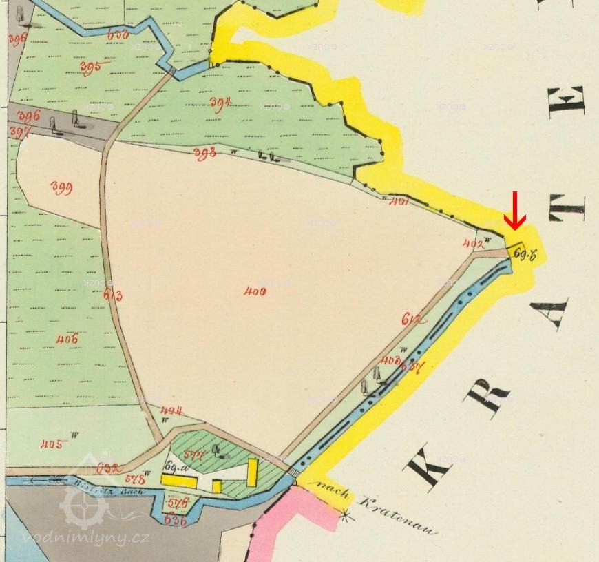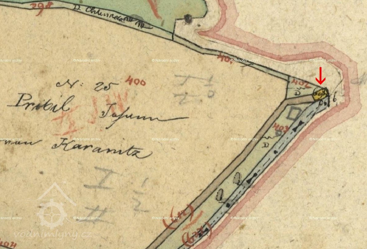 Mlýn je nejasně vyobrazen na Indikační skice a na Císařském otisku a zcela jasně na III. voejnském mapování. Na I. a II. vojenském mapování vyobrazen není. (RŠ)