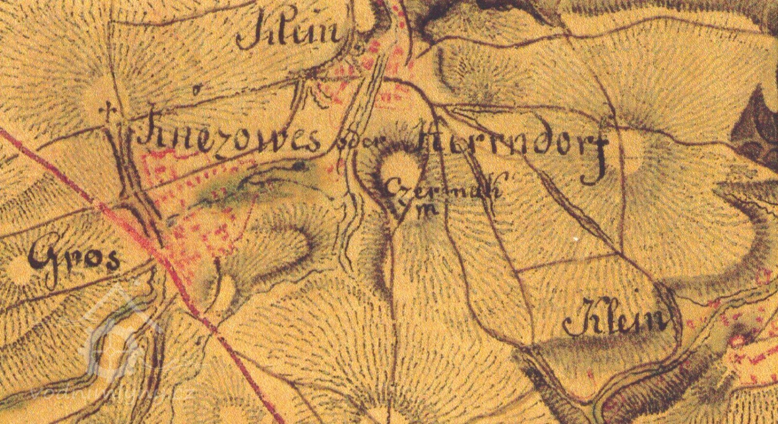 Velký opravený mlýn stojí pod rybníkem u odbočky z hlavní silnice na Kněževes. Mlýn dostal jméno po mlynářské rodině Čermáků, která mlýn vlastnila od r. 1740.