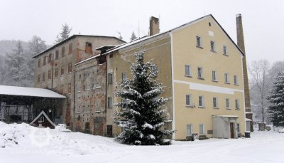 Starobylý mlýn, který zde stával už v 17. století, později přebudovaný na několikapatrový tovární objekt.