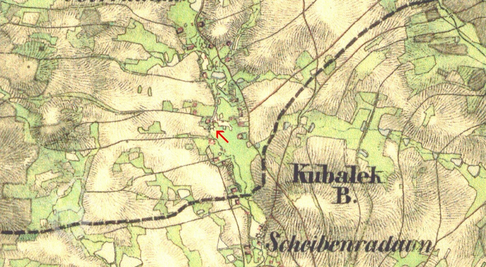 Místní obec Horní Radouň, osada Horní Radouň, na potoce od Bozděchova přicházejícím, mlýn čp.11 se stoupami. Držitelé: Hron, dle sdělení c.k. okres. soudu v Kamenici n. L. z 31.1.1902 je knihovním držitelem Jakub Vaňásek.