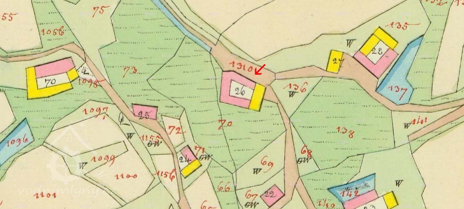 Popis1930: 1 kolo na svrchní vodu, hltnost 0,055 m3/s, spád 5,5 m, výkon 2,62 HP