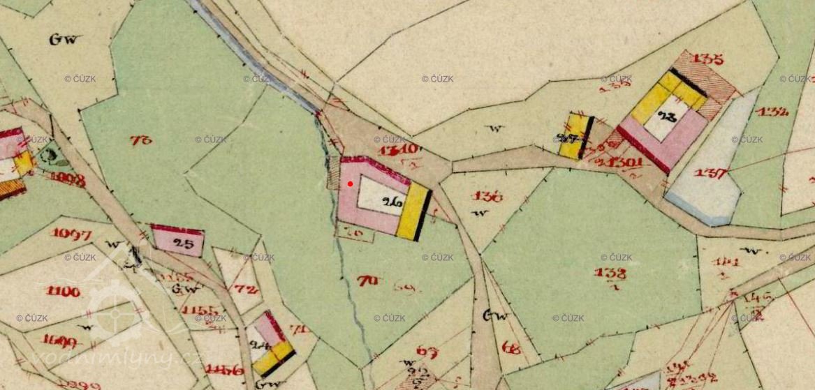 Mlýn uveden v Seznamu vodních děl Republiky československé z r.1930, maj. Jakub Šrůc