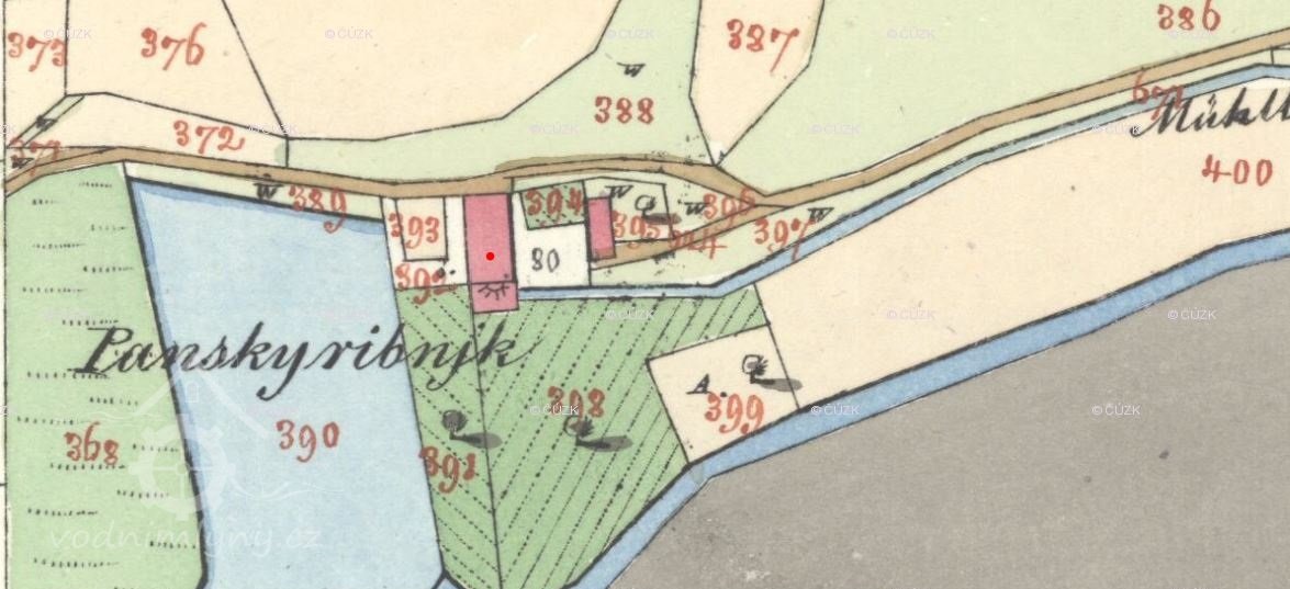 Nad mlýnem byl rybník, který dnes neexistuje.